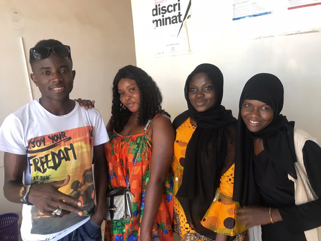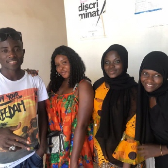 Trotzdem, Isatou und Ousman haben einen Workshop in Ousman's Haus organisiert, am 18. Juni. Teilnehmer waren diesmal (vorne von links) Aji Yassin Ceesay, Sainabou Cham, Sirra Jallow, Ramatoulie Jallow, hinten (von links) Jahou Cham, Isatou Jallow und Ousman Ceesay.