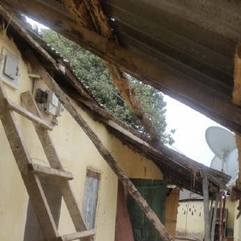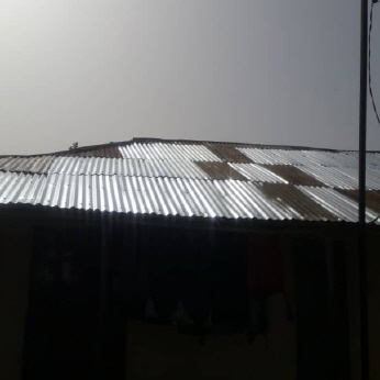 In diesem Jahr hat die Regenzeit recht früh gestartet. Musa Sanneh, er wohnt in Gunjur, hat gleich an diesem Tag (16. Juni) ein Bild geschickt. Vom Haus hat es einige Corrigates (Wellblechtafeln, mit denen sind die meisten Häuser gedeckt) bei einem Gewittersturm abgerissen.