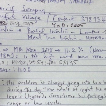 Die letzten Messungen fanden statt am 4./5. Dezember. Insgesamt, ein paar wenige Nachzügler kamen in der Woche danach, wurden 53 Langzeitzuckermessungen gemacht. Der (unwissenschaftliche) Durchschnitt wurde errechnet: 10,2% (ca. 250mg/dl). Damit lag er wenigstens nicht schlechter als im März (10,4%). Wir haben in den letzten Jahren festgestellt, dass sich nach der Regenzeit bei einigen Typ1ern der Wert eher verschlechtert hat.