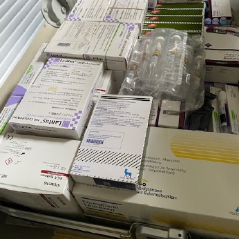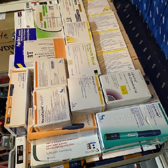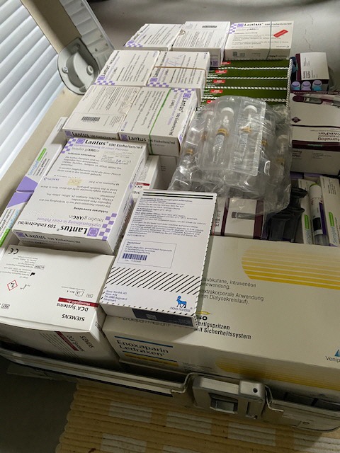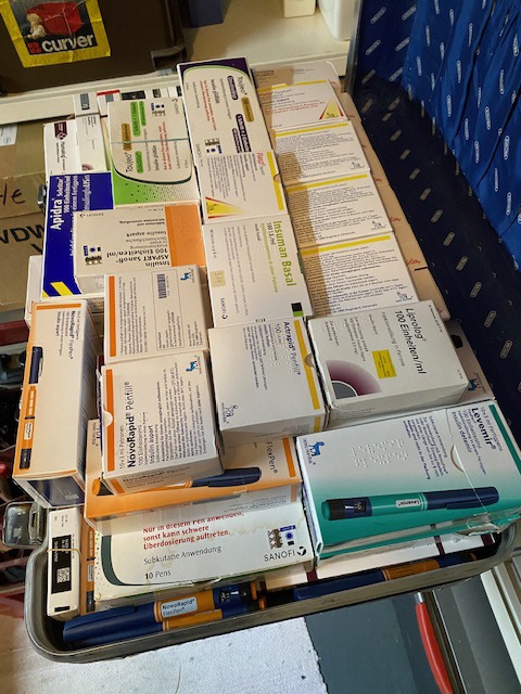 Dabei ist natürlich das gekaufte und gesammelte Insulin, 2x23 kg (Halbjahresbedarf), und nochmals 15kg auf unsere Koffer verteilt.