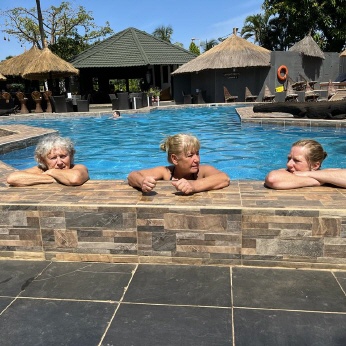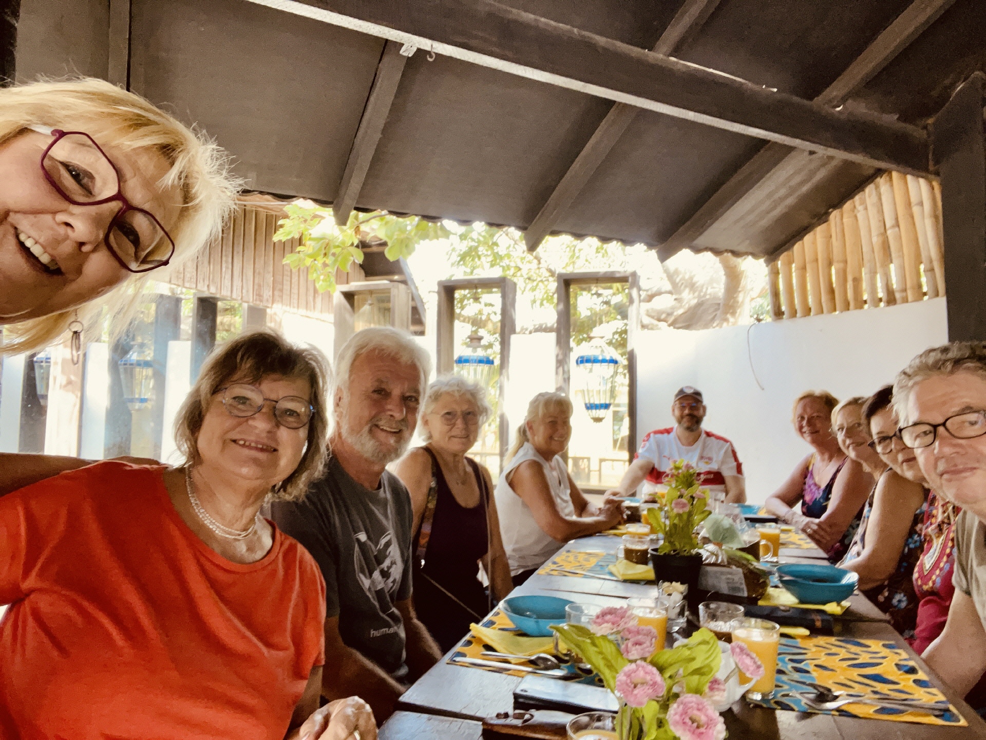 Heute haben wir uns alle einen echten Urlaubstag gegönnt. Im Hotel am Pool, mit kalten Getränken, lässt es sich aushalten! Ein letztes gemeinsames Abendessen, zusammensitzen, miteinander schwätzen…