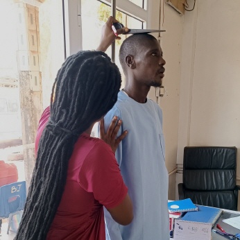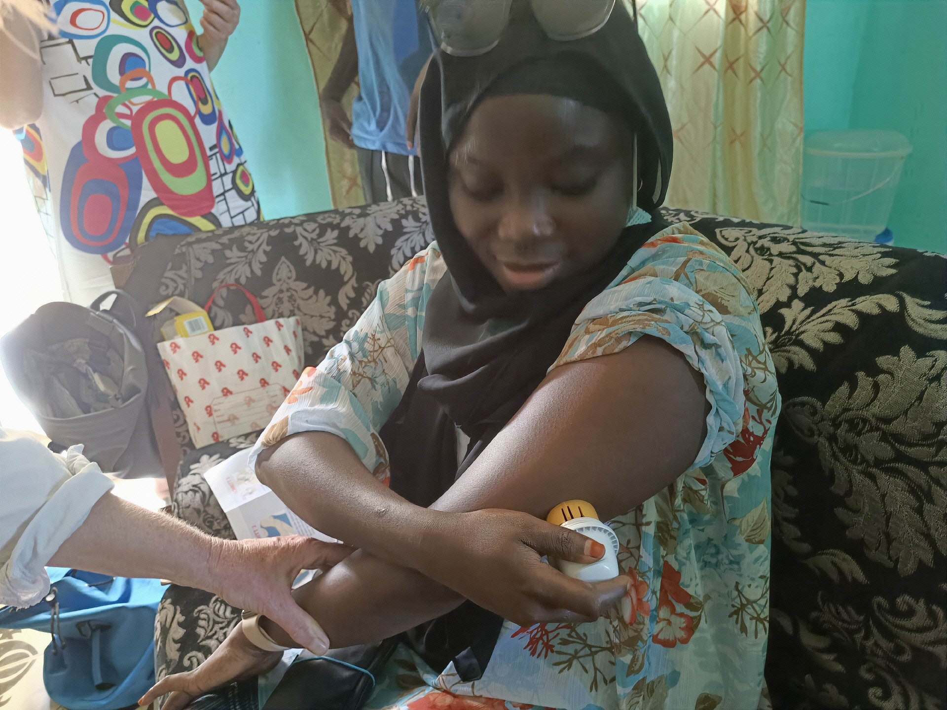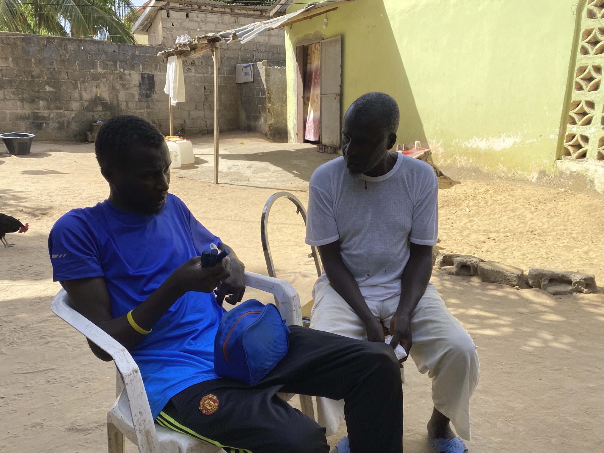 Danach ging es weiter zu Sheriff Sanyang, auch er wurde mit Sensoren Libre 2 versorgt. Mariama und Sheriff haben nun für weitere 2 Monate die Möglichkeit, den Gewebezucker zu messen, um hoffentlich bessere Werte zu erreichen.