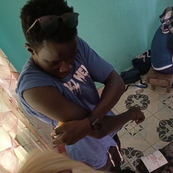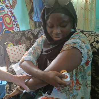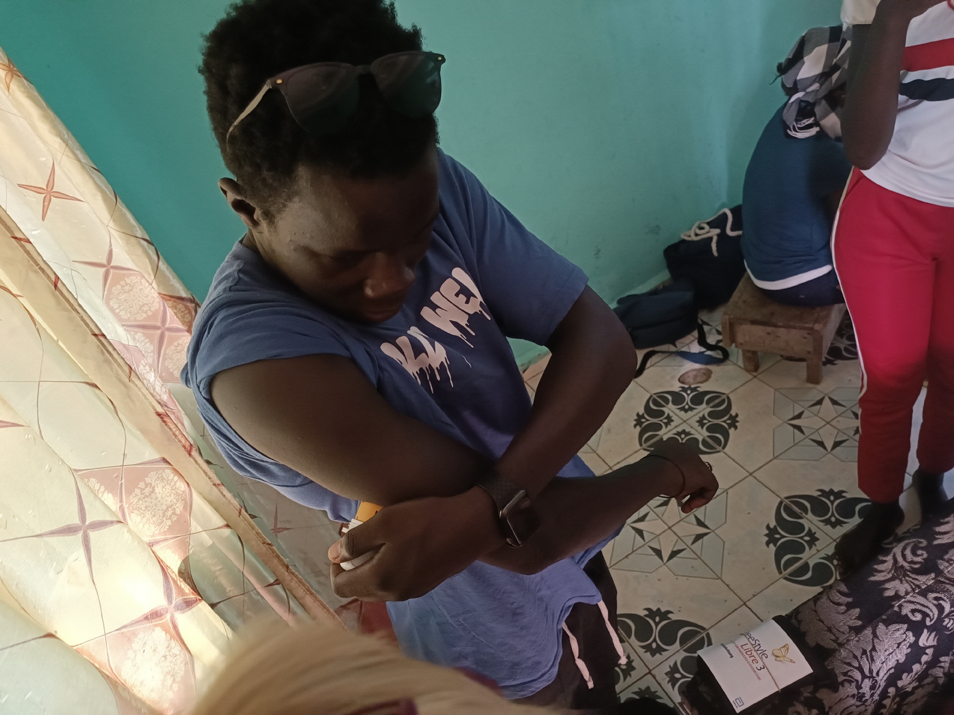 Danach ist Roland zu Mariama Badjie gefahren, um ihr den letzten Dexcom7 zu setzen. Der Erste musste raus, weil er wohl geschmerzt hat. Der Zweite hat falsche Werte angezeigt (??), und jetzt hat sie noch 10 Tage, um von den Sensorwerten was zu lernen.