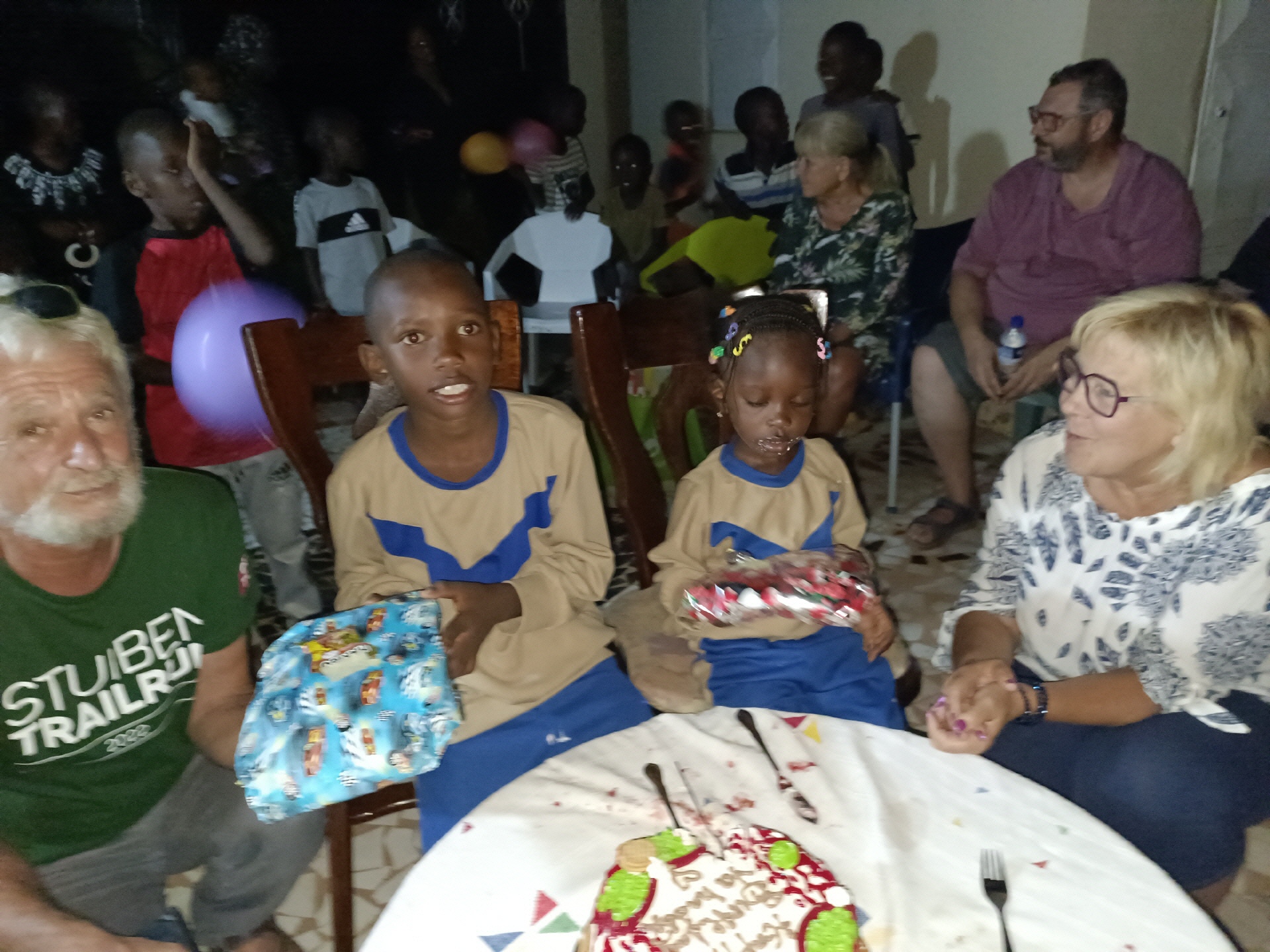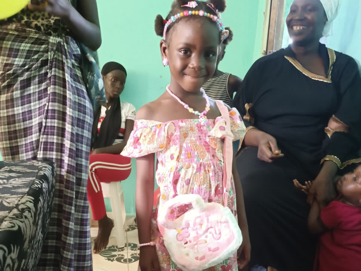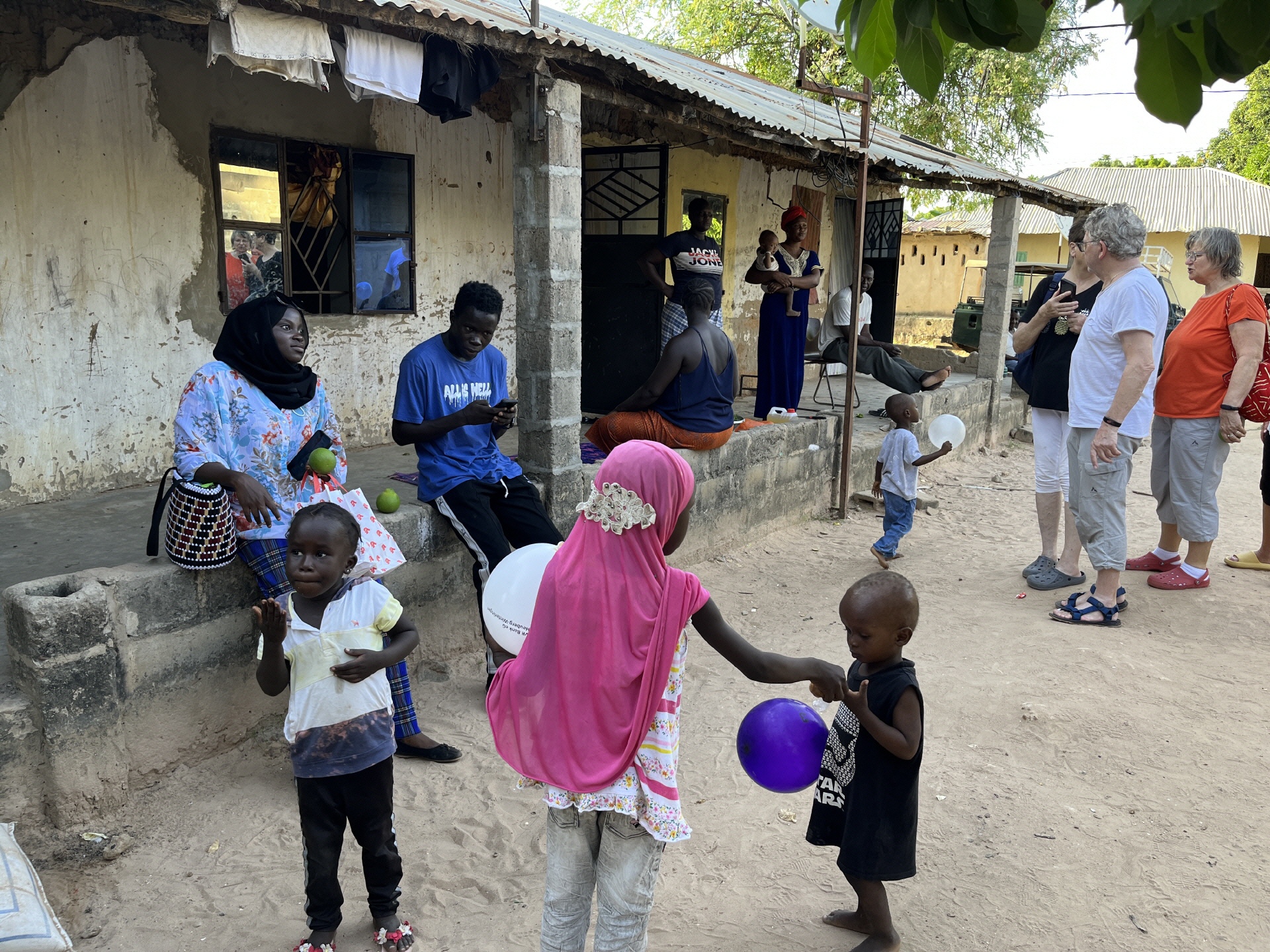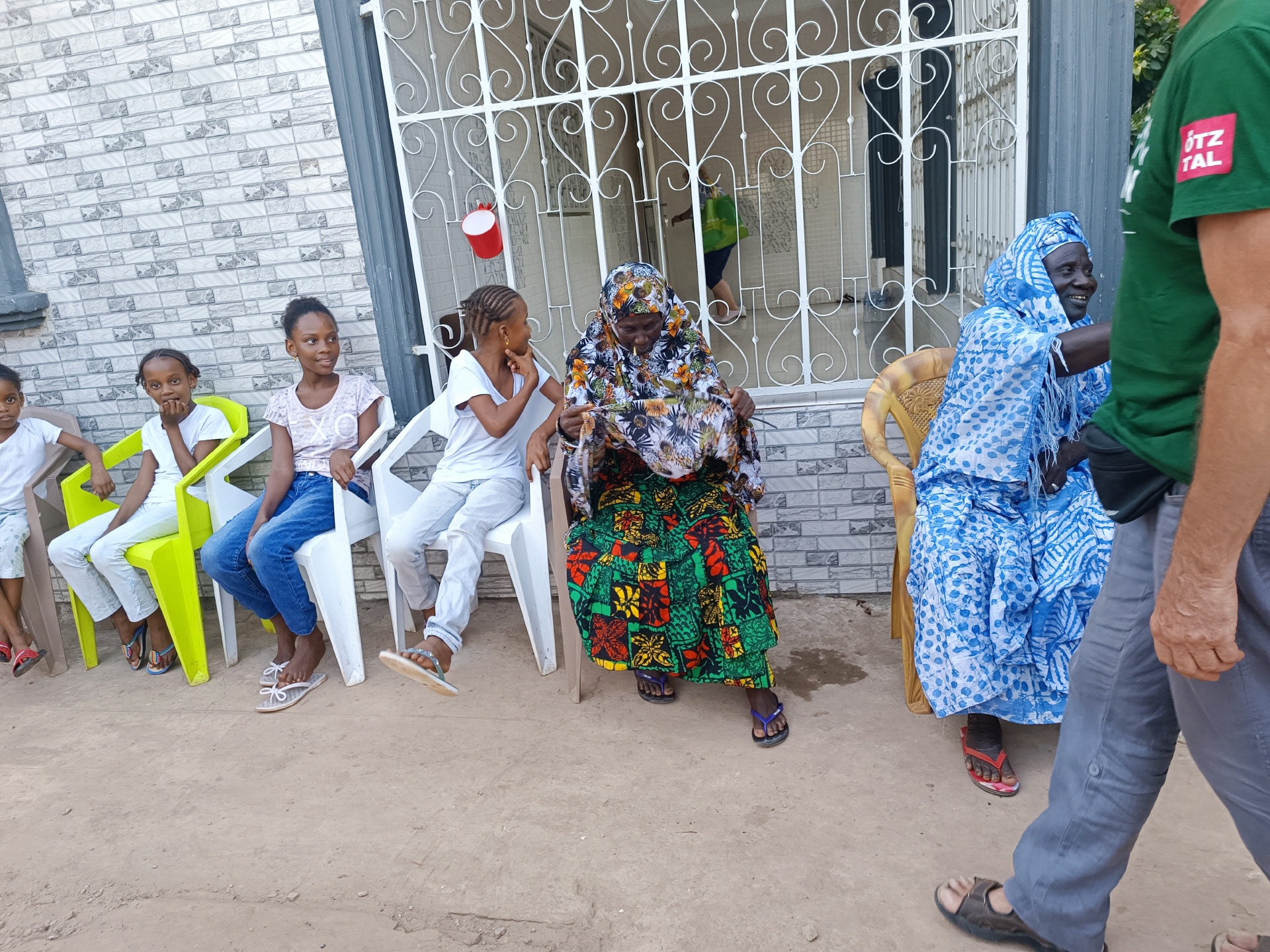 Alle haben gut geschlafen! Am Nachmittag hat uns Abou abgeholt. Wir sind zu unserer Kleinsten mit Diabetes Typ1, Mariama Ndow. Sie hat wiederum einen Sensor (Libre 2 - Gewebezuckermessung) gesetzt bekommen, die wir in Deutschland eingesammelt hatten, von Personen, die sie nicht mehr benötigen. Mariama ist nicht mehr so schüchtern, und über die Geschenke ihrer Patin Christa war sie überglücklich, samt ihrer Schwestern.