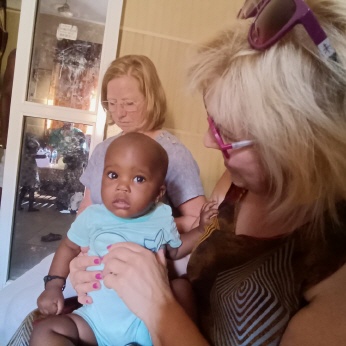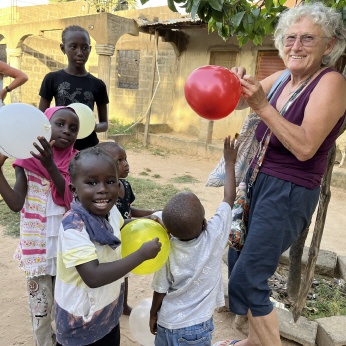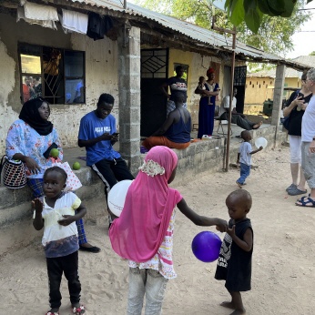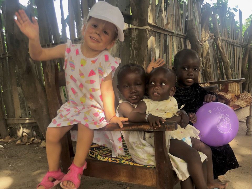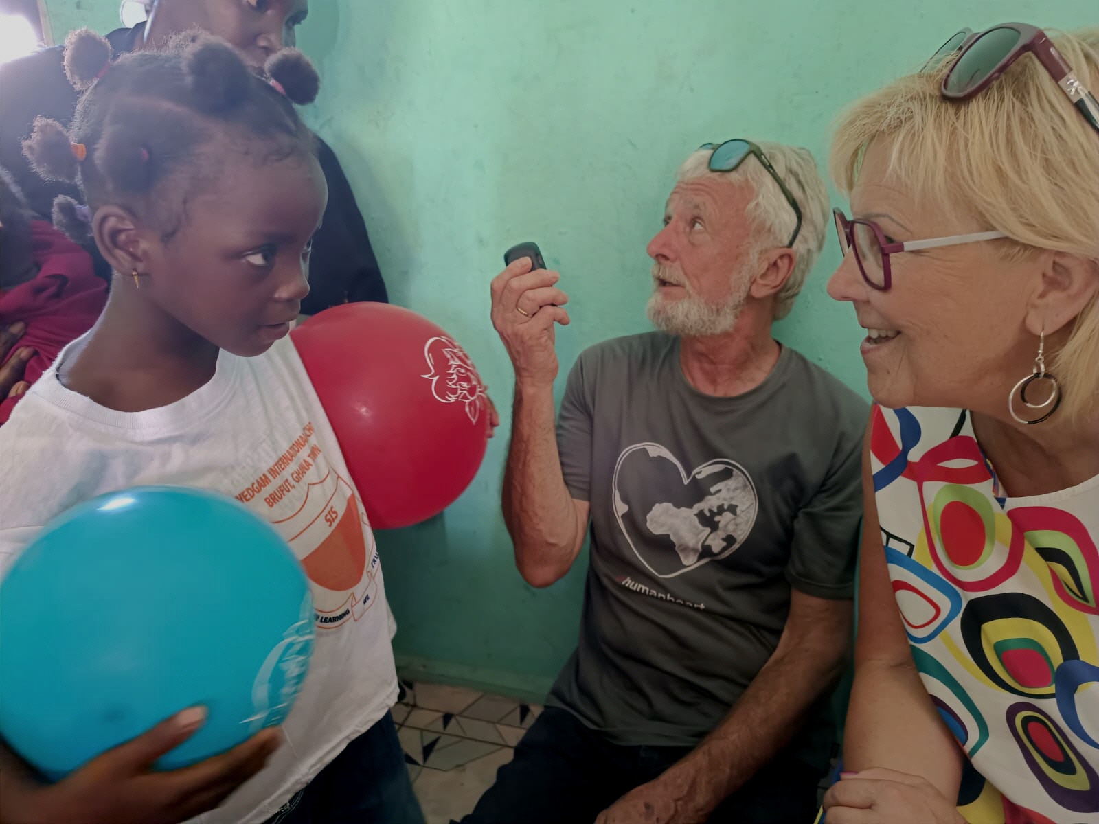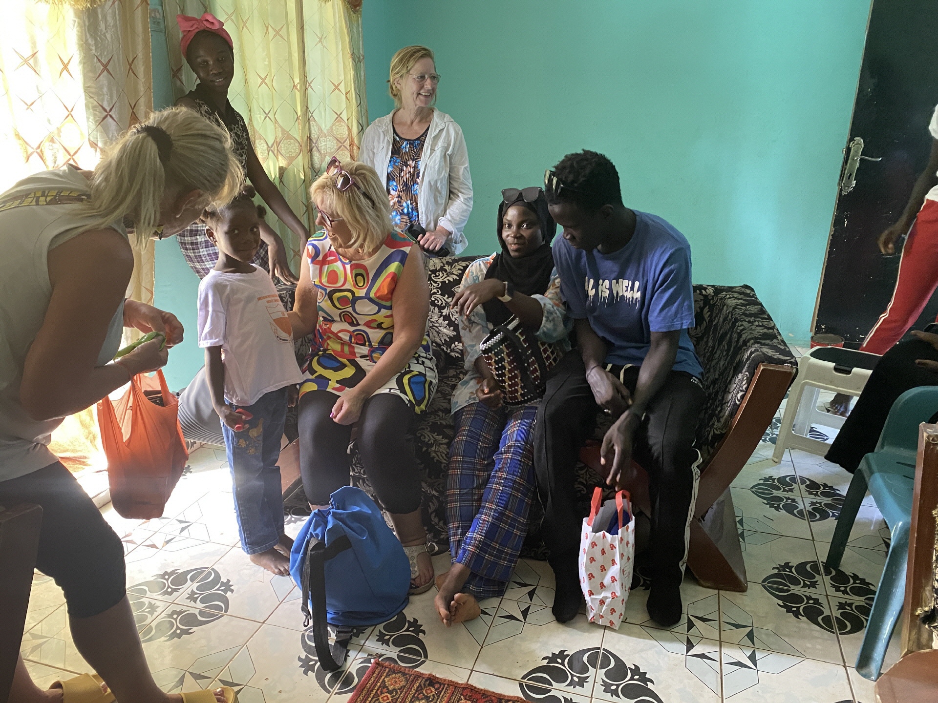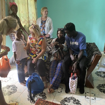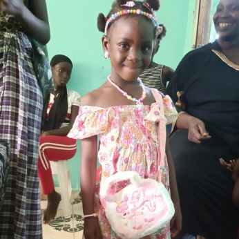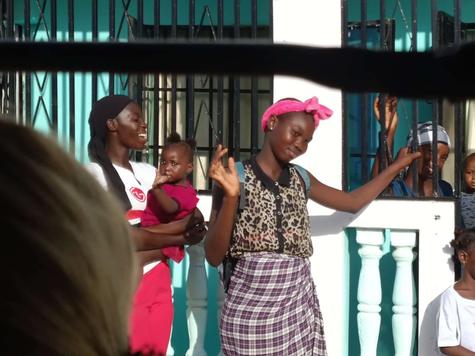 Alle haben gut geschlafen! Am Nachmittag hat uns Abou abgeholt. Wir sind zu unserer Kleinsten mit Diabetes Typ1, Mariama Ndow. Sie hat wiederum einen Sensor (Libre 2 - Gewebezuckermessung) gesetzt bekommen, die wir in Deutschland eingesammelt hatten, von Personen, die sie nicht mehr benötigen. Mariama ist nicht mehr so schüchtern, und über die Geschenke ihrer Patin Christa war sie überglücklich, samt ihrer Schwestern.