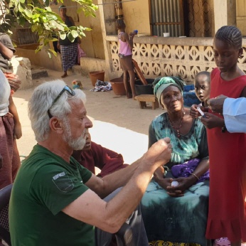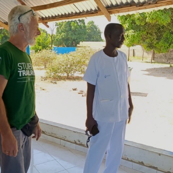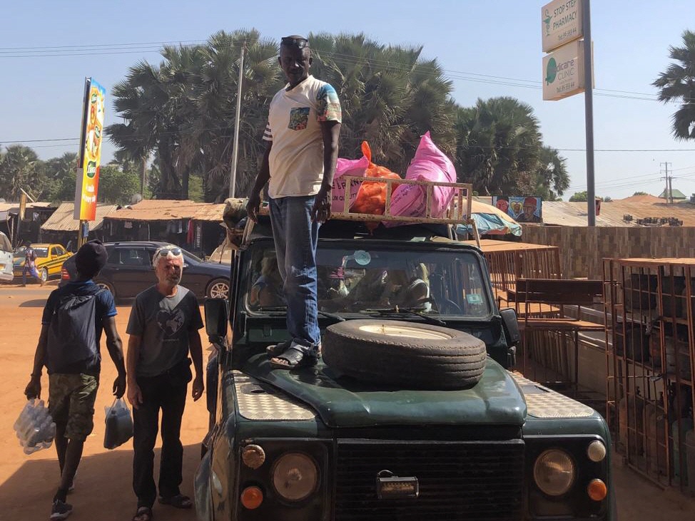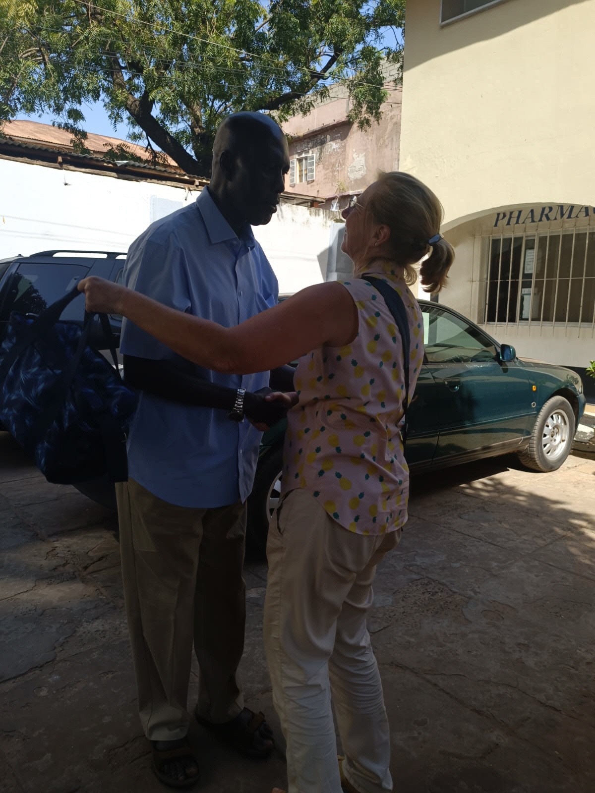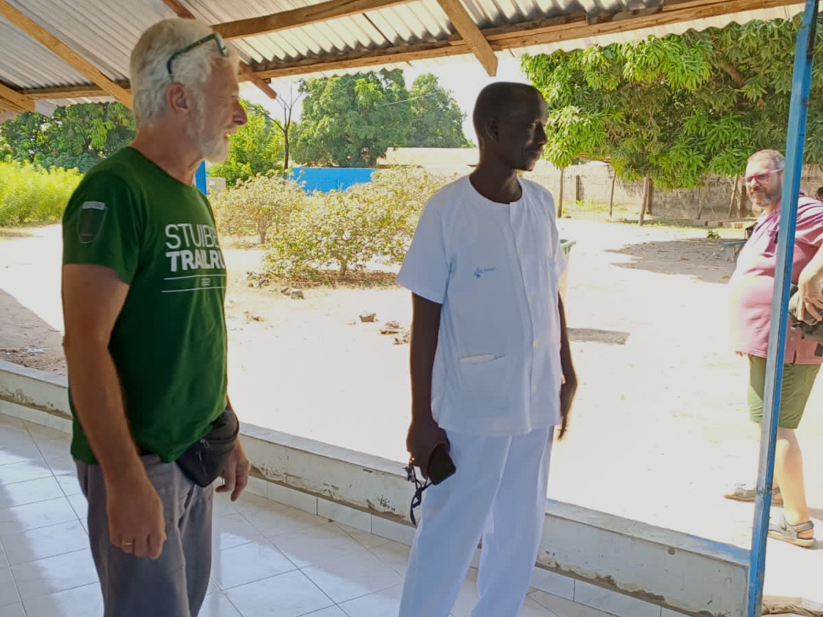 Ein Zwischenhalt in Batabut, dort hat uns Ebou, der Leiter der kleinen Klinik dort, erwartet. Wir versorgen die Einrichtung mit medizinischem Material.