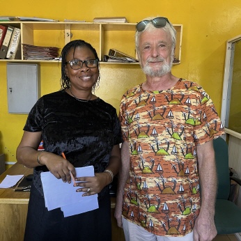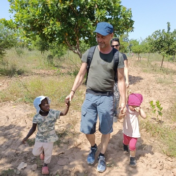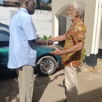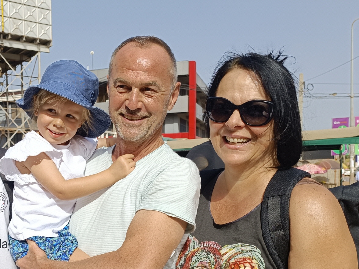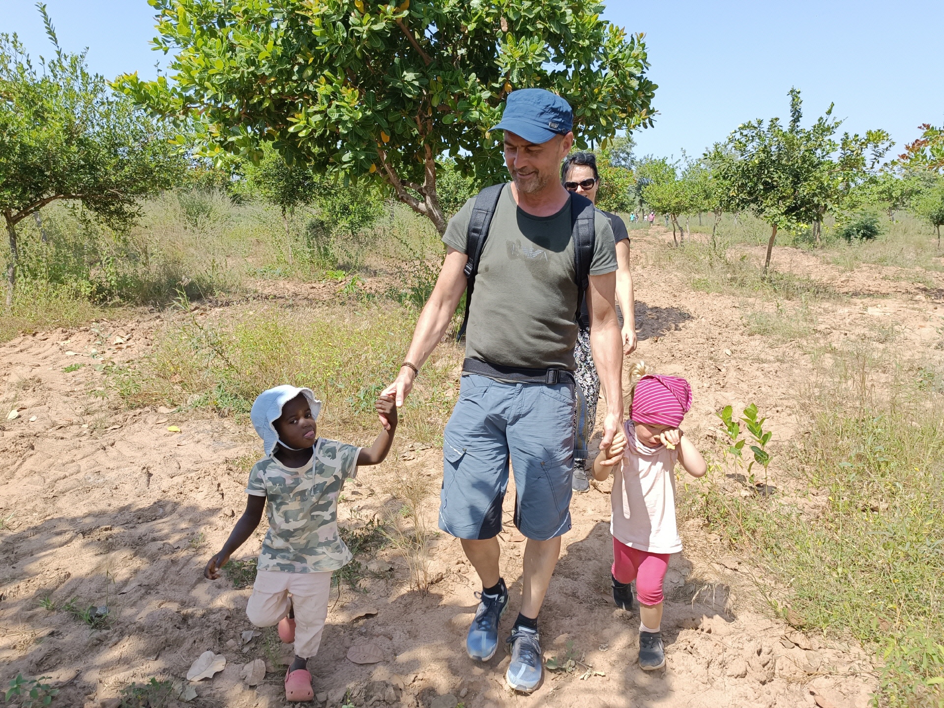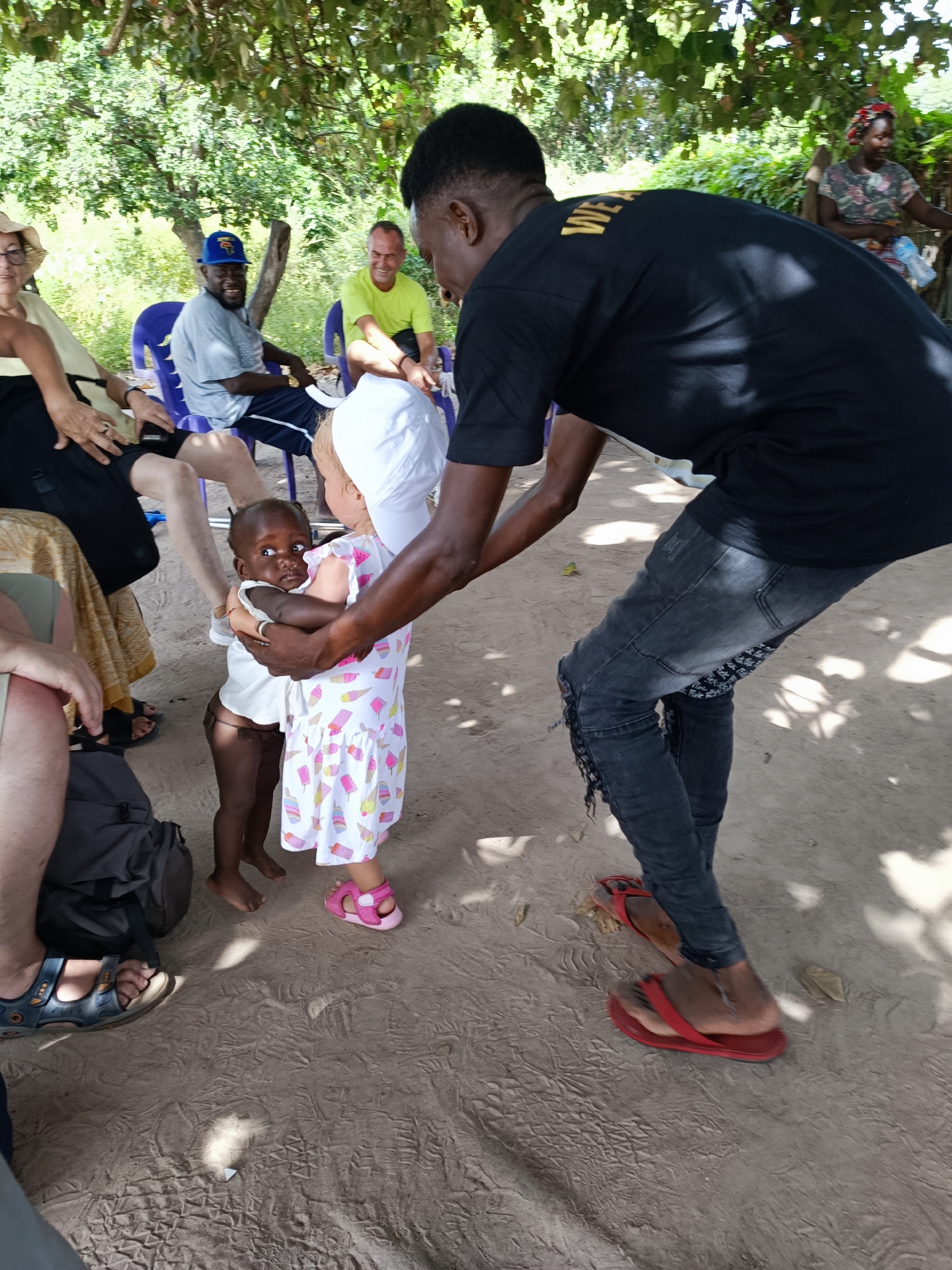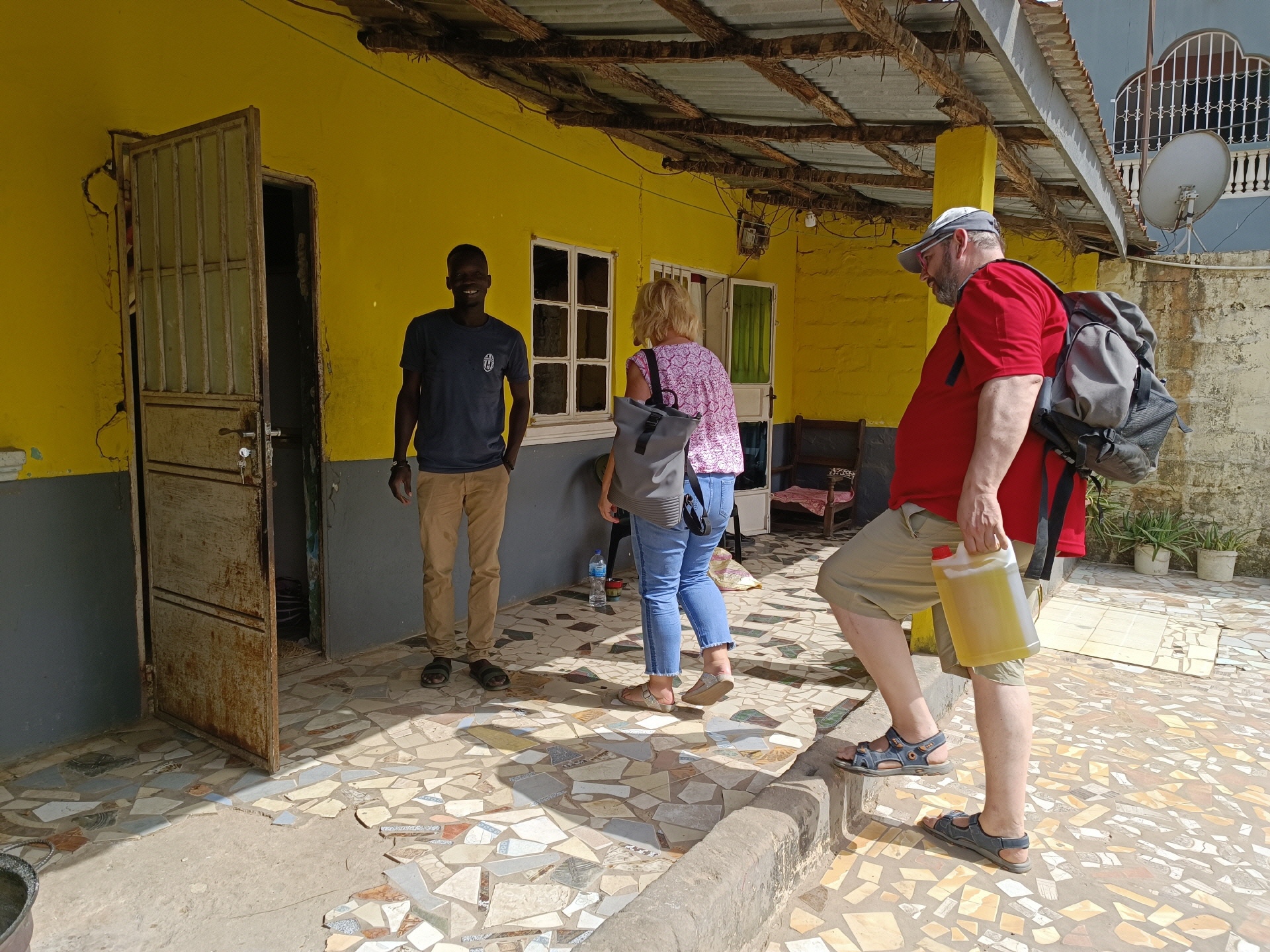 Unsere Gruppe hat Zuwachs bekommen: Armin, Elvira und Mariella (3 Jahre alt) sind heute am Morgen im Bakotu angekommen. Armin hatte vor einigen Jahren die Patenschaft für Musa Sanneh (Gunjur) übernommen, und wollte seinen Schützling persönlich kennenlernen.