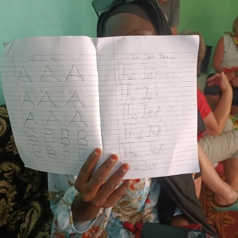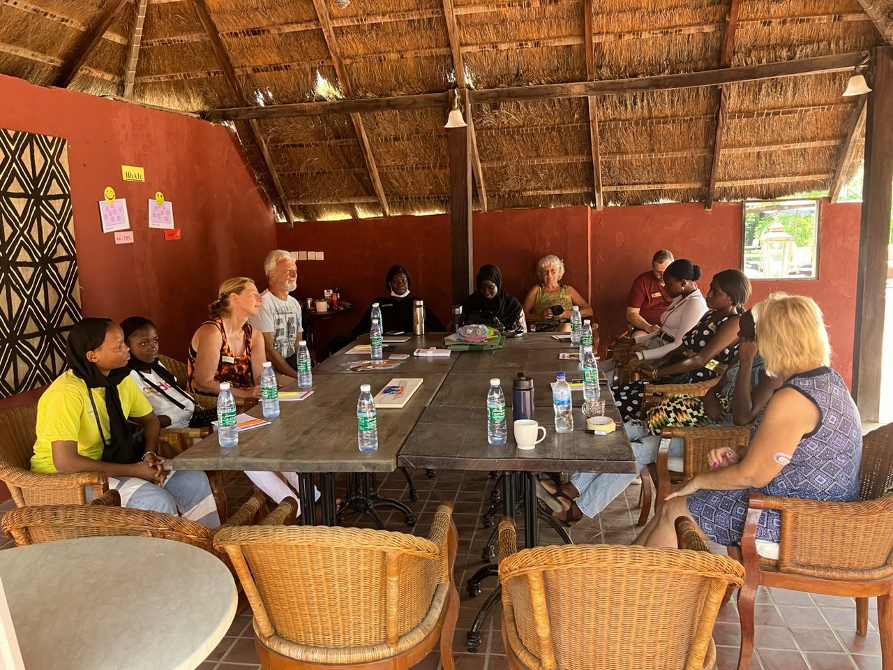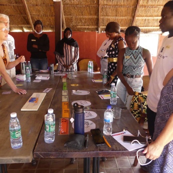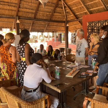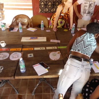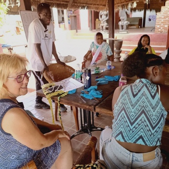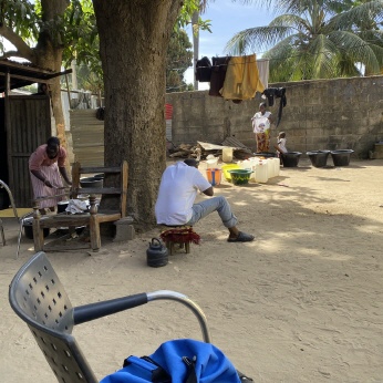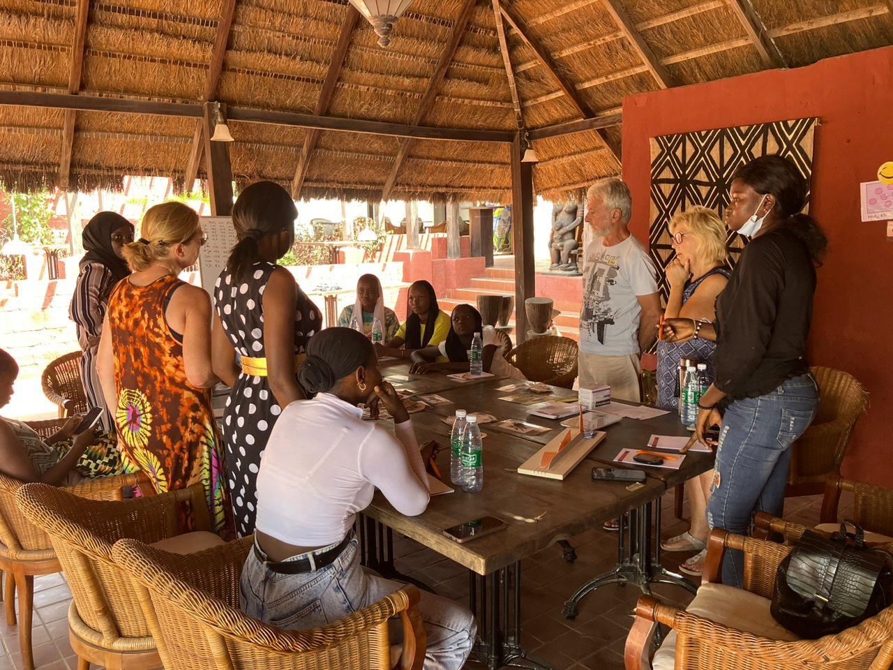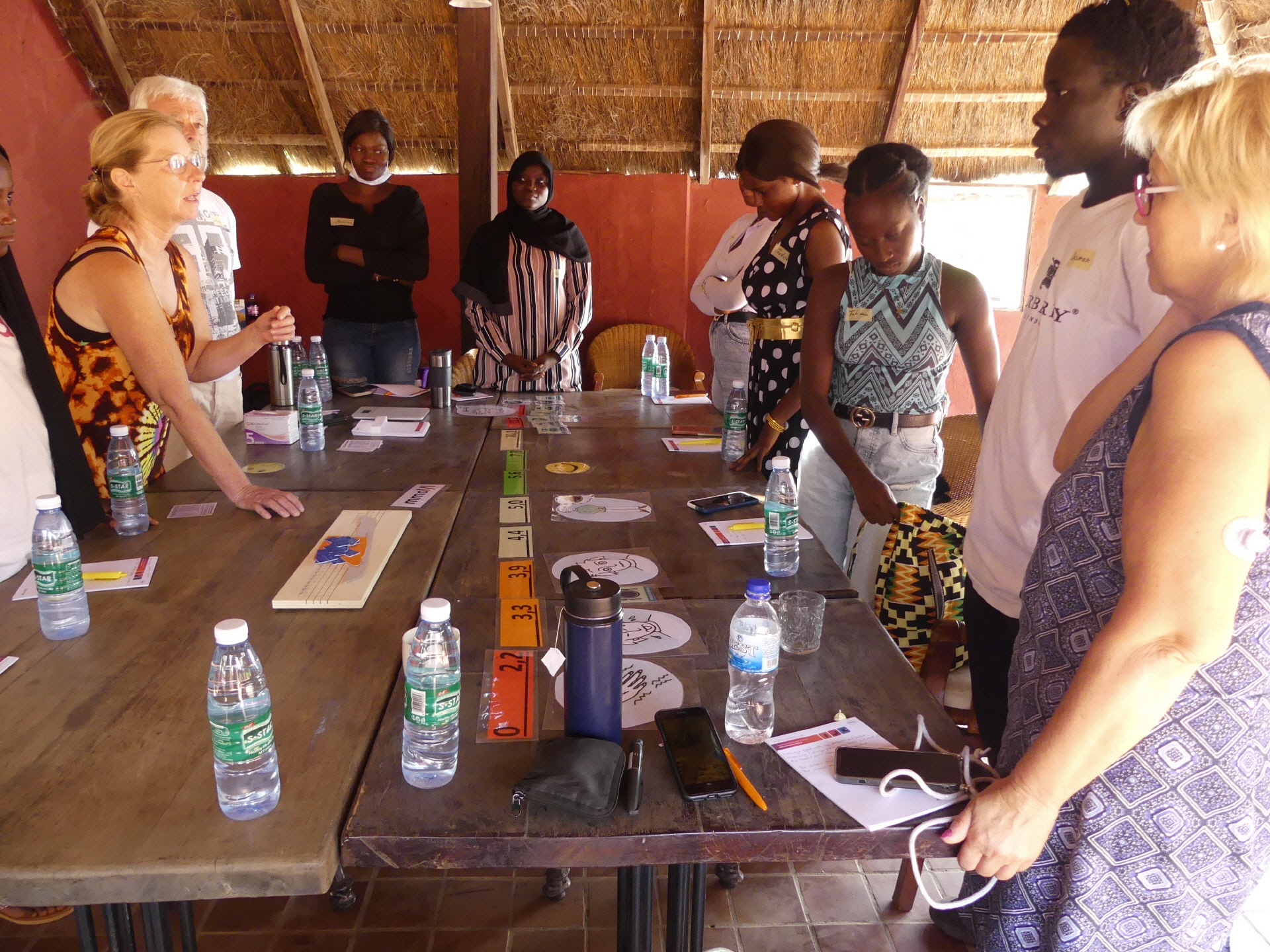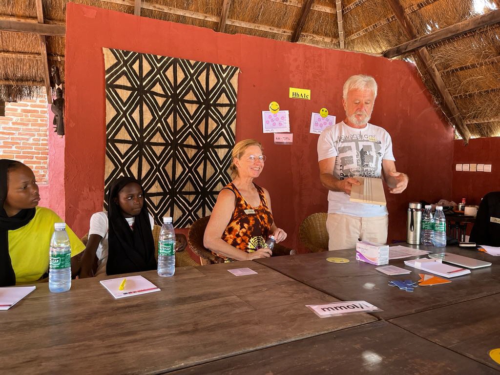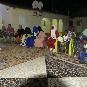 Diesen Samstag hatten wir den Workshop hier im Bakotu-Hotel geplant. Starten wollten wir um 10.30h, wir haben gewartet, bis alle hier waren. Um 11.30h konnten wir beginnen. Es waren, bis auf Ousman Ceesay, alles Damen, im Alter von 12 bis 24, insgesamt 8. Zwei Teilnehmerinnen kamen dann um 13.30h…