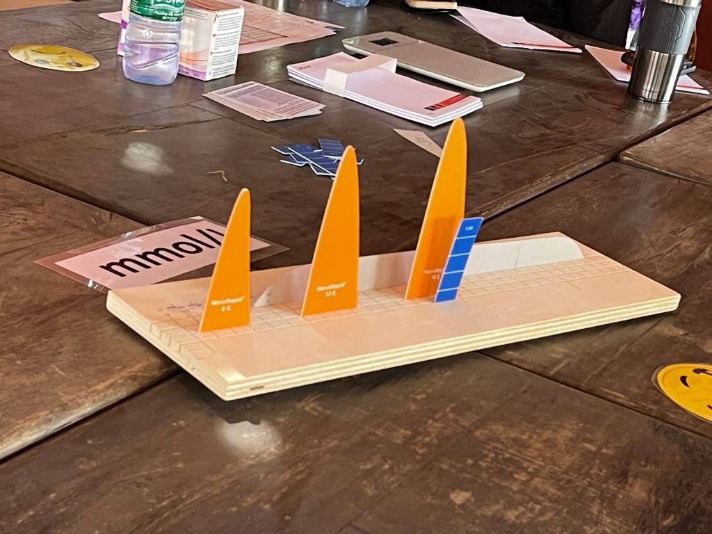 Katja hat den überwiegenden Teil des Workshops übernommen. Sie hatte tolles Anschauungsmaterial mitgebracht. Zunächst mussten alle ihren Blutzucker messen, es gab nur wenige höhere Ergebnisse, die dann korrigiert wurden. Im ersten Teil ging es über die Bedeutung der Blutzuckerkontrolle und die Wirkung der Insuline, daran anschließend wurden Karten von Lebensmitteln und Getränken sortiert nach Zuckergehalt.