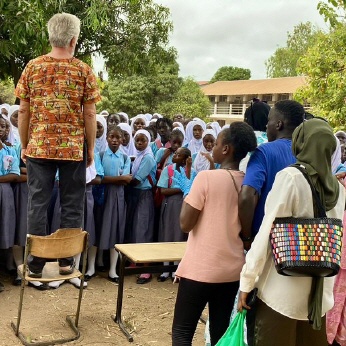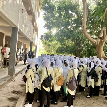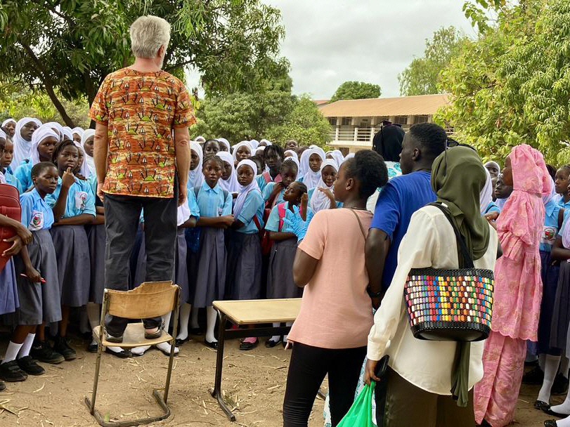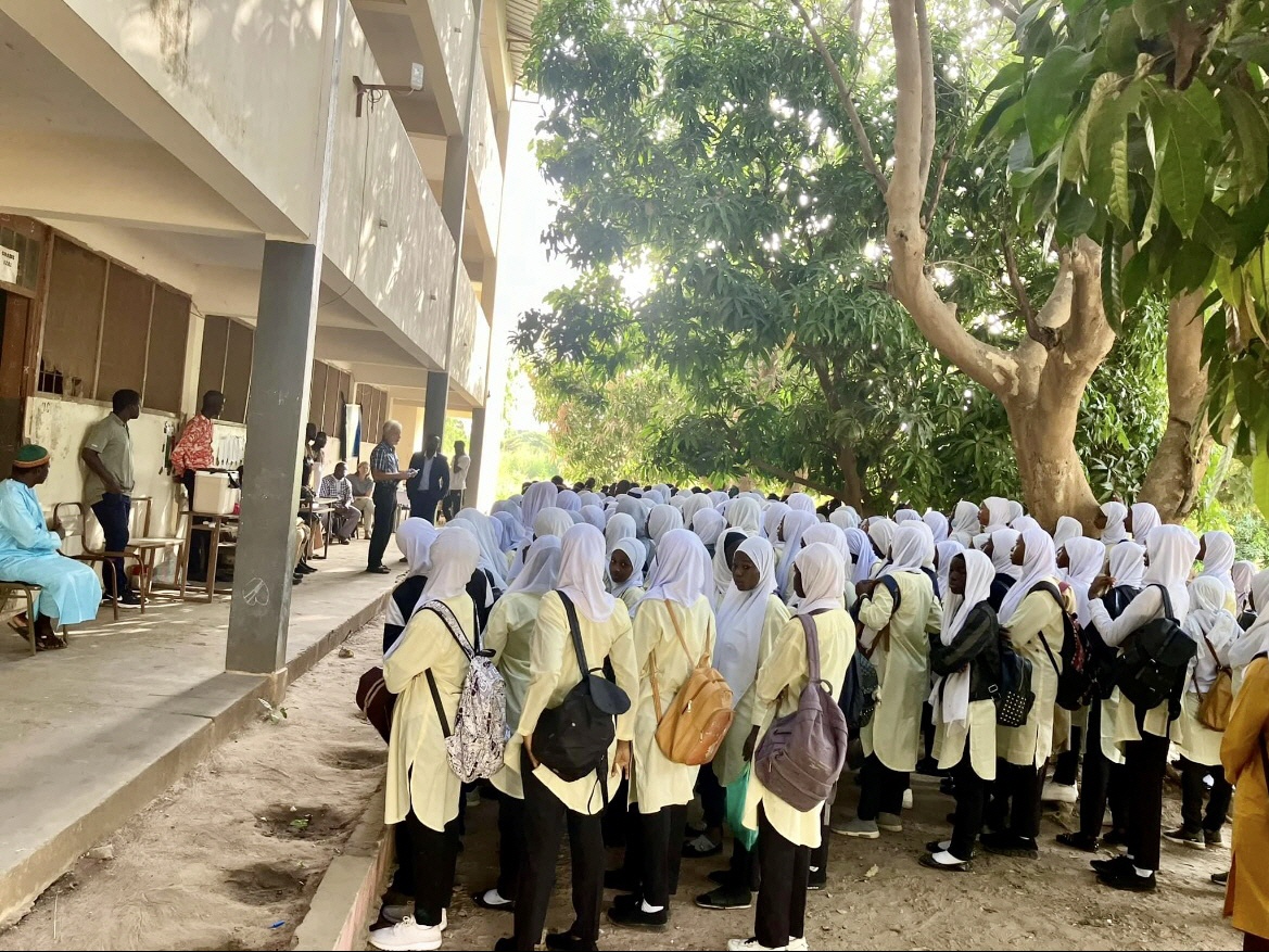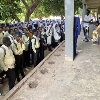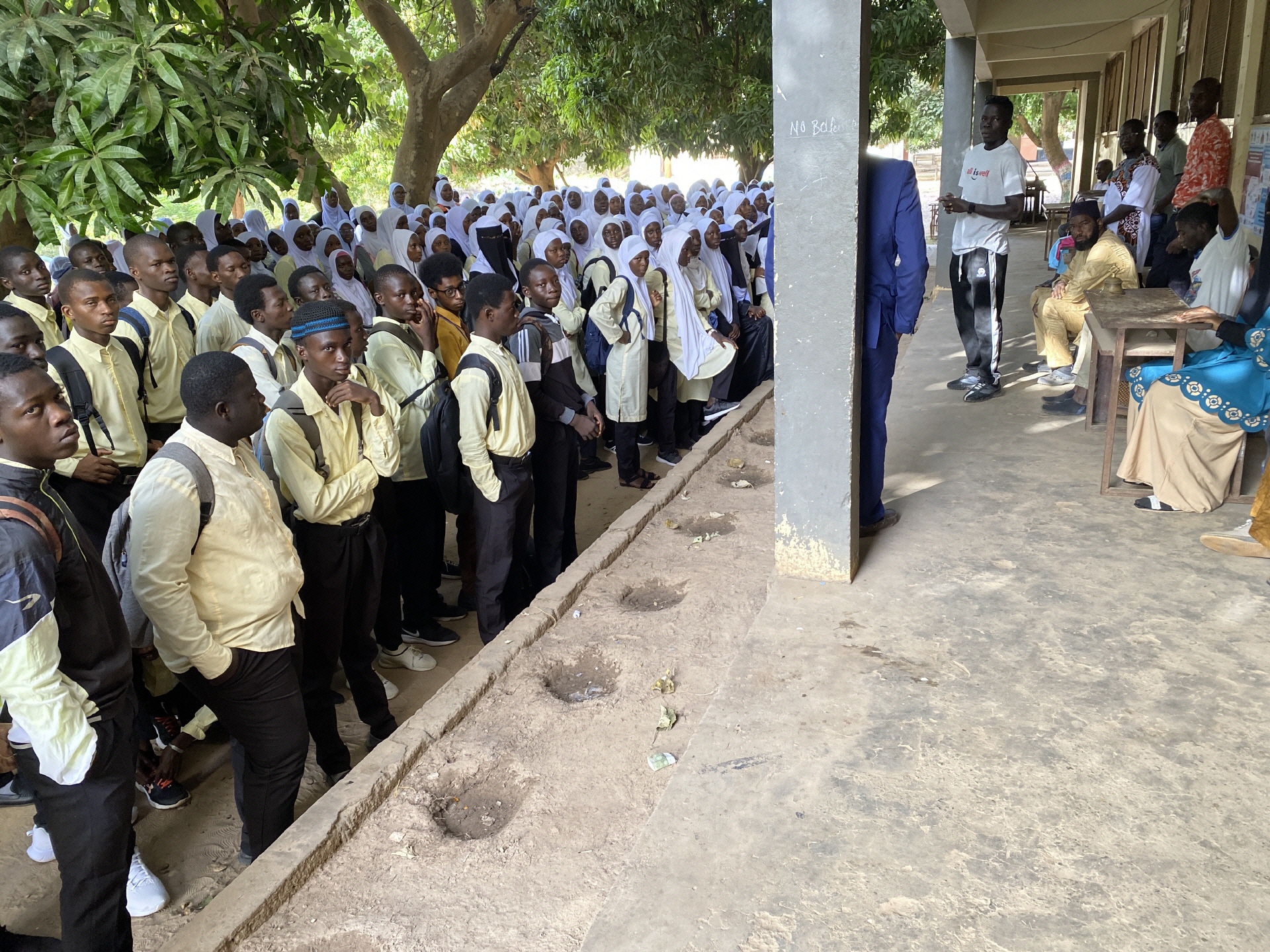 Heute, am Montagmorgen, hatte Ousman Ceesay Katja und mich in eine Schule in der Nähe des großen Fußballstadions eingeladen, Schule, die Mass Kah Senior Secondary School.
