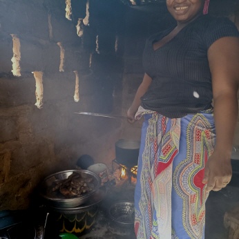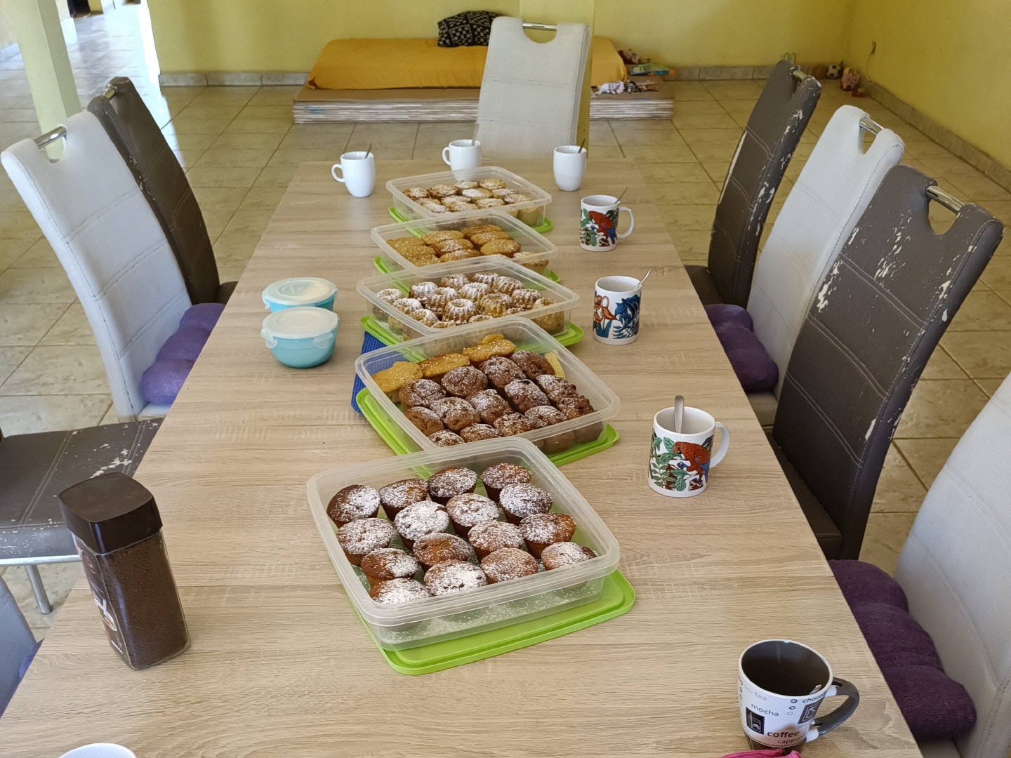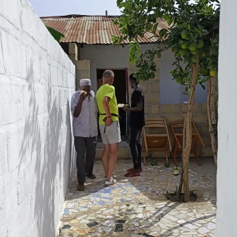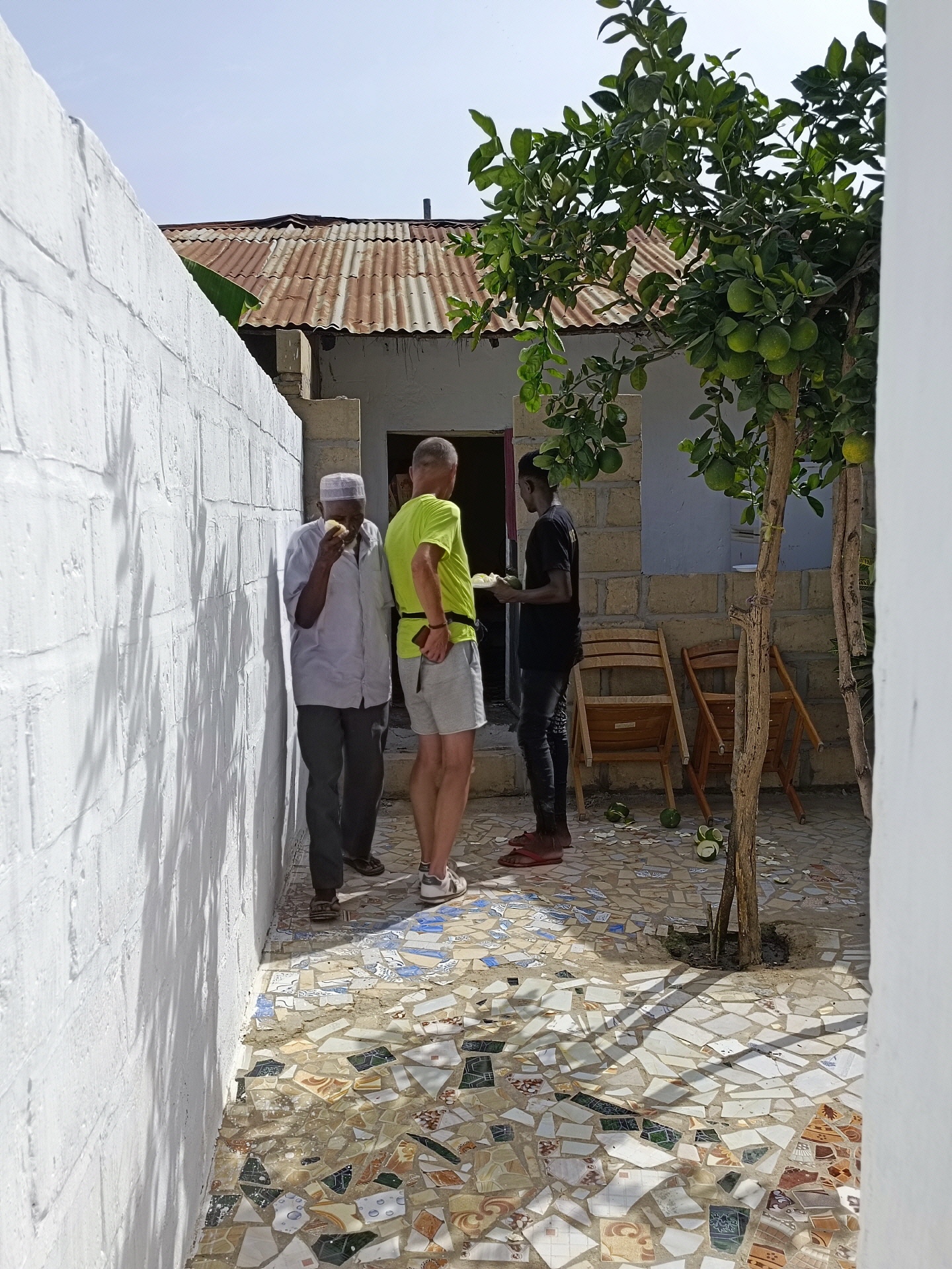 Danach haben wir Musa mit seiner Familie besucht. Wir wurden überfreundlich empfangen, seine beiden Schwestern haben uns ein tolles Lunch serviert. Seinen Wohnraum hat er nach hinten erweitert, ummauert, es gibt nun eine Kochstelle, eine Toilette und einen Lagerraum hinter dem Haus. Er ist ja jetzt gelernter Elektriker, die notwendigen Installationen hat er selbst gemacht.