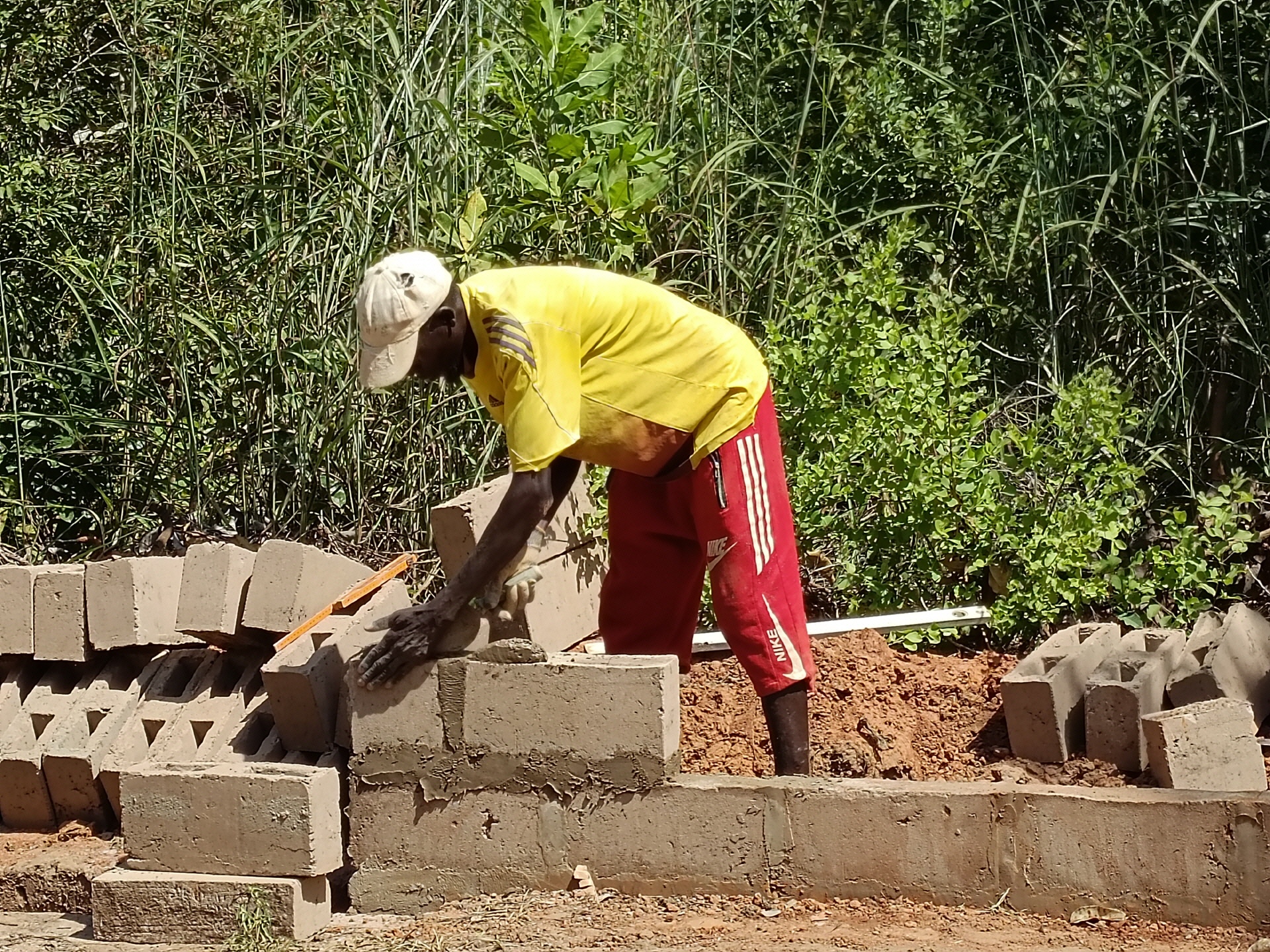 Auf der Farm wachsen die Cashewbäume, ca. 800 Stück sind es mittlerweile , Orangenbäume, Zitronen- und Limettenbäume. Das Areal wurde noch etwas erweitert, und dort waren Ousman, Omar und einige Helfer beschäftigt, im hinteren Teil des riesigen Grundstücks die Mauer aufzubauen. Der Preis für die Cashews ist grad sehr niedrig, und fast nicht kostendeckend.