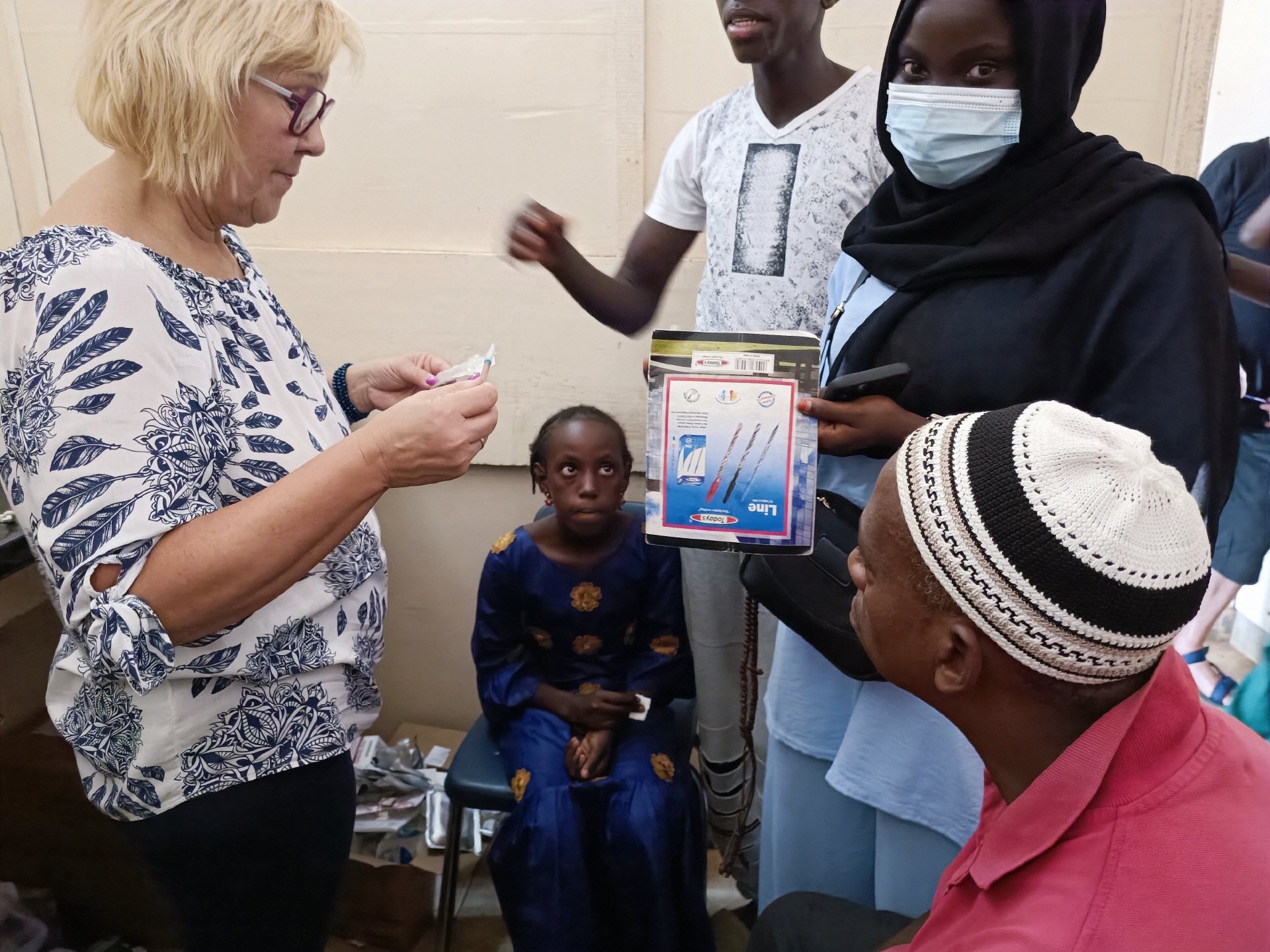Ein kurzer Besuch daheim bei Susanne und Ibrahim in Brikama, dann ging es weiter nach Wellingara zu Fatou Sarr. Sie ist 13, wurde vom Krankenhaus in Banjul mit Mischinsulin und einer einzigen U100-Spritze versorgt. Sie ist das Mädchen mit der Spritze und der langen Nadel. Nun hat sie genug Pens mit Novomix bis zur nächsten Reise im Frühjahr 2024.