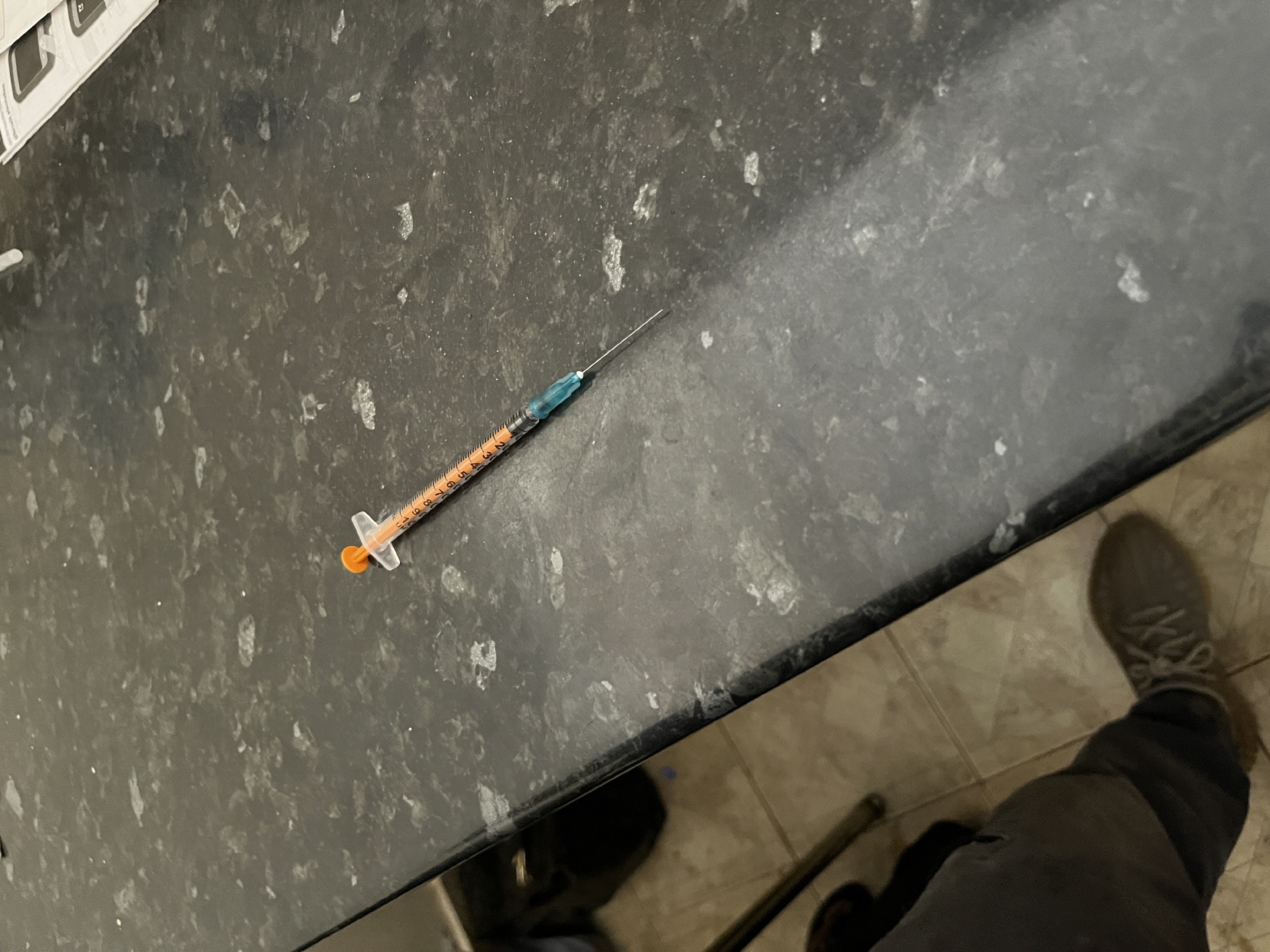 Zwei Tage hatten wir nun im Gudrun Medical Lab zugebracht. Einigermaßen übersichtlich ging es zu am Freitag mit 21 unserer Schützlinge zu. Am Samstag wurde es dann doch etwas chaotisch, und wir wurden fast überrand! 32 Typ1er kamen, darunter etliche Neumanifestierte, wir waren alle beschäftigt. Katja mit der Fußinspektion, Steffen mit Klaus beim Augencheck, Gudrun und Mariama mit Dembo (beide aus dem Lab) mit der HbA1c-Messung und Roland mit dem Auslesen von Blutzuckerwerten in den Laptop und den Dokumentationen. Berichtenswert war die Insulinspritze und das 10ml-Fläschchen von Mariama Sillah, siehe Bilder, und die bei den neumanifestierten Typ1ern, die nicht von der Pakalaklinik versorgt werden. Modou Lamin D. (10 Jahre alt) hatte seinen Diabetes im März bekommen, und wurde bisher mit Metformin versorgt. Da hatte er Glück, dass er vermutlich eine längere Honeymoonphase hatte (vorübergehende Erholung der Bauchspeicheldrüse nach der Erstdiagnose), sonst wäre er sicher schon an einer Ketoazidose verstorben.