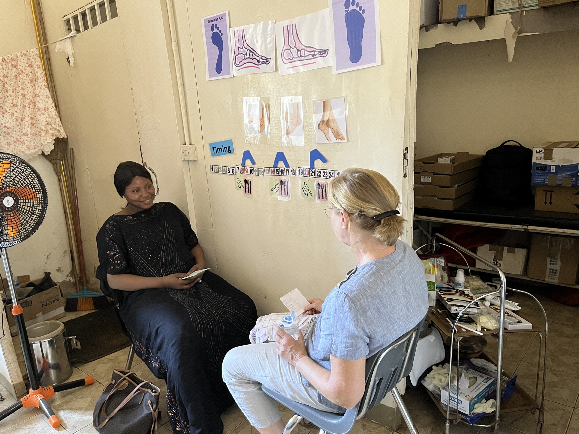 Katja hat sich alle Füße angeschaut, Steffen hat einen Augencheck gemacht, Gudrun und Mariama (aus dem Labor) haben den Langzeitzucker und Blutzucker gemessen, Roland hat sich die Blutzuckerwerte aus den Messgeräten angeschaut in der SmartPixSoftware.