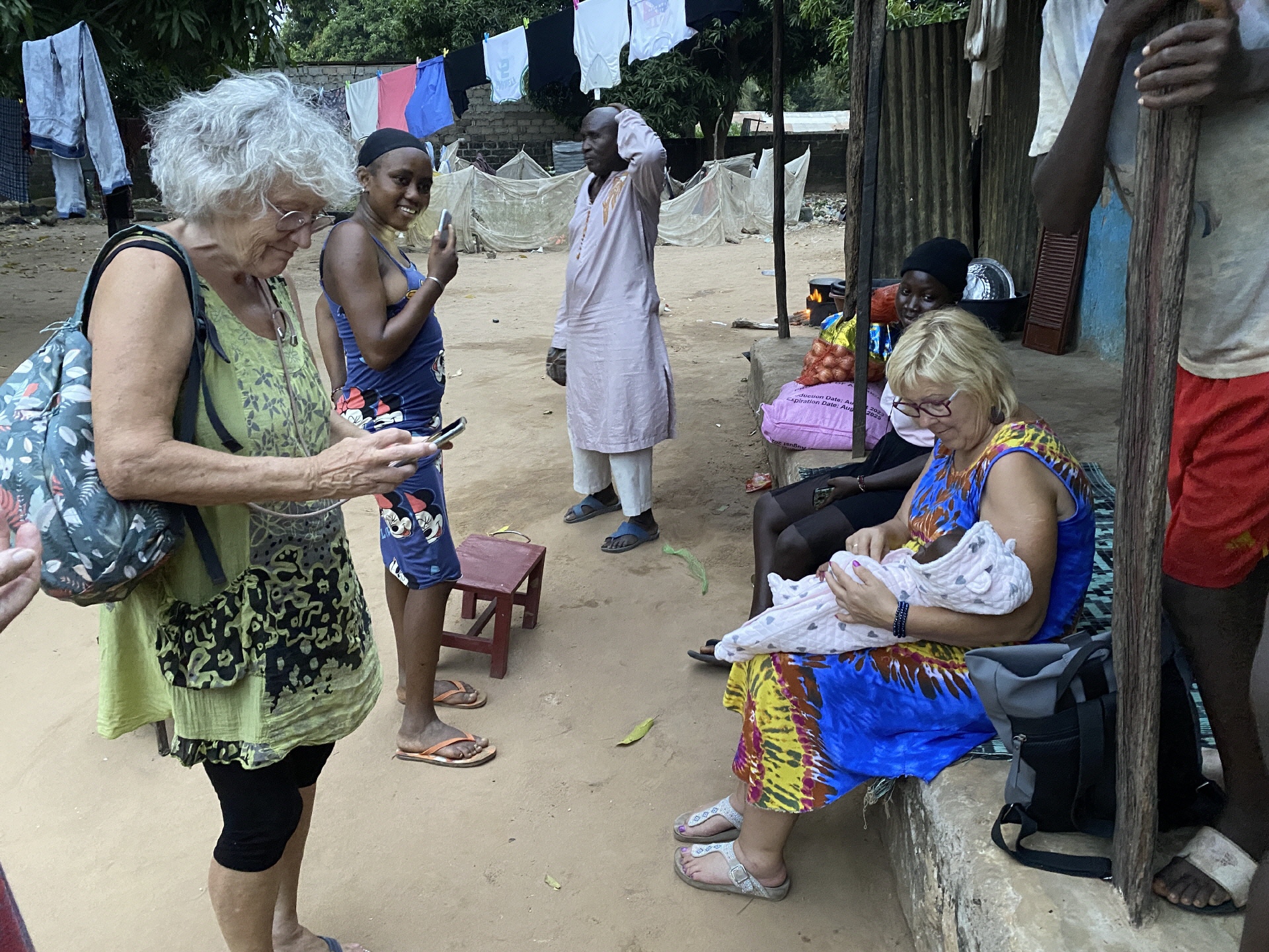 Ein Besuch bei Hilde stand auf dem Programm. Sie residiert mit Baba in der Babhilds in Bakau. Roland hatte dort im April gewohnt. Sie hatte für uns ein leckeres Lunch mit Fisch zubereitet. Danach haben wir uns aufgemacht zur Familie Darboe, Fatoumatta hat Typ1. Roland hatte es dem Vater Yusupha geschrieben mit dem Lunch bei Hilde, aber wir wurden dort zu einem frühen Dinner eingeladen, und alle haben was gegessen (mussten...), obwohl wir nicht mehr hungrig waren. Deshalb die vielen Bilder...Die Mutter von Fatoumatta, Aramata, hat am 21. September einen Bub geboren, Jankuba.