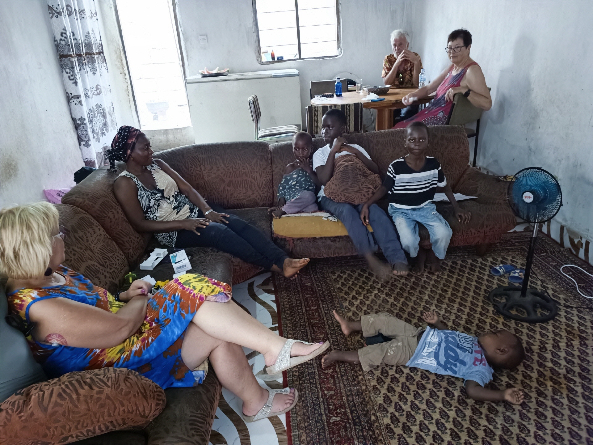 Die Gruppe hat Roland dort abgeholt, wir haben uns nach Faji Kunda zum Besuch von Amie Colley und Familie aufgemacht. Ihre Kinder gehen, bis auf den Kleinsten, Ibrahim, alle zur Schule. Der Älteste ihrer vier Kinder, Abdulrahman, ist nun schon 12 Jahre alt. Amie's Langzeitzucker ist ok.