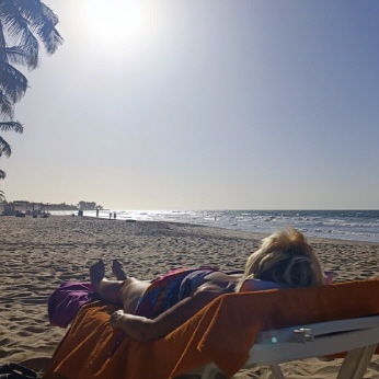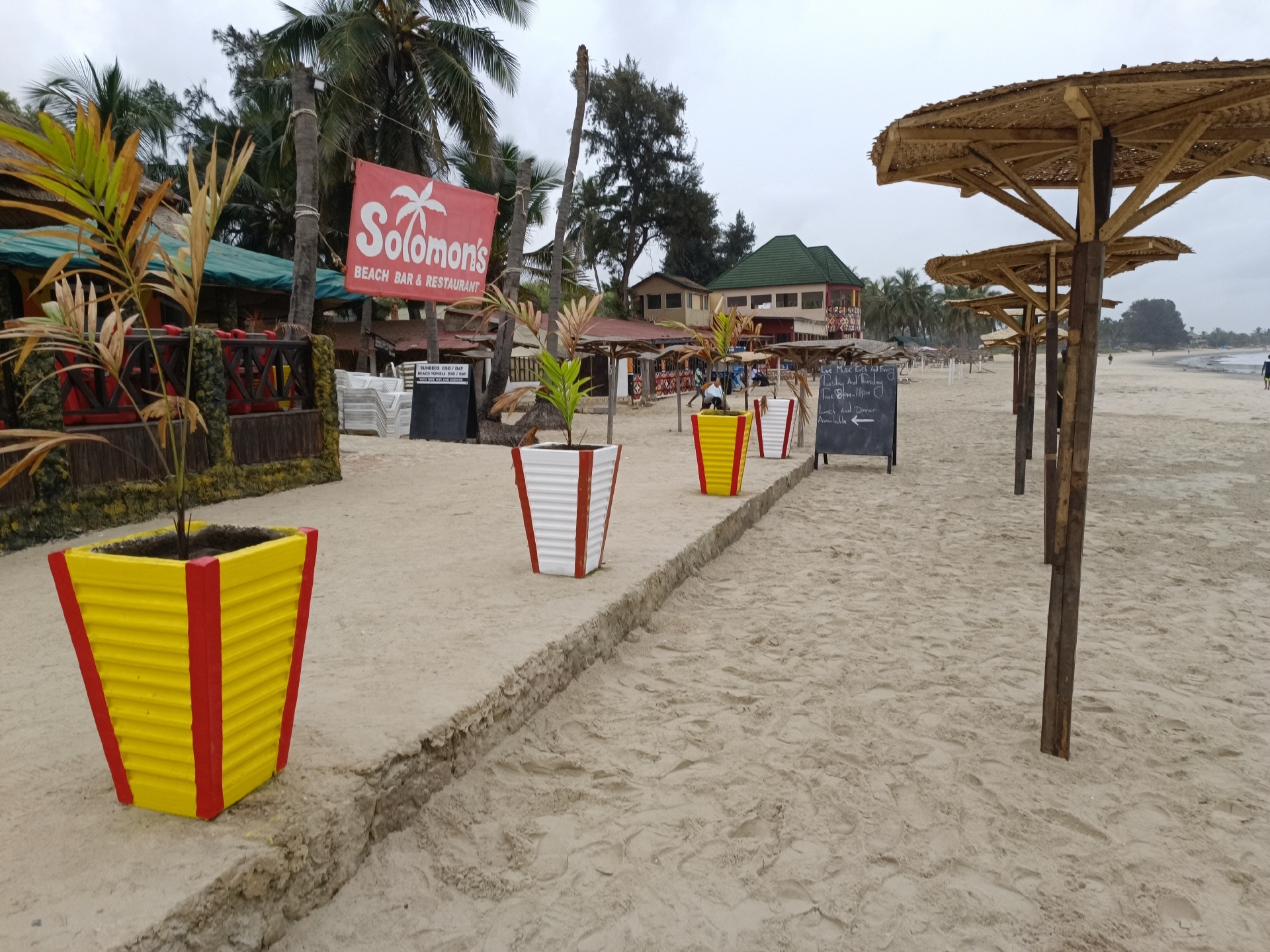 Um 9.30h waren wir im Hotel Bakotu "daheim". Die beiden Insulinkoffer mit dem meisten Insulin hat Abley gleich mitgenommen und in die Pakala-Klinik gebracht. Ein kleines Frühstück, alles auspacken und sortieren. Ein Spaziergang am fast leeren Strand, danach, wer wollte, ein wenig Schlaf nachholen, ein gemeinsames Abendessen, die Planung für den nächsten Tag - dann ging es nicht zu spät ins Bett – wir hatten 30 Grad im Zimmer.