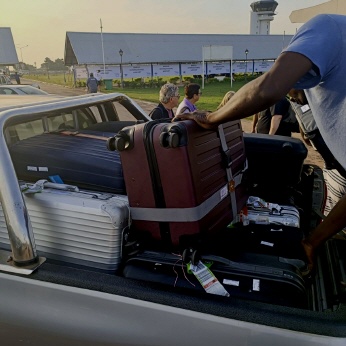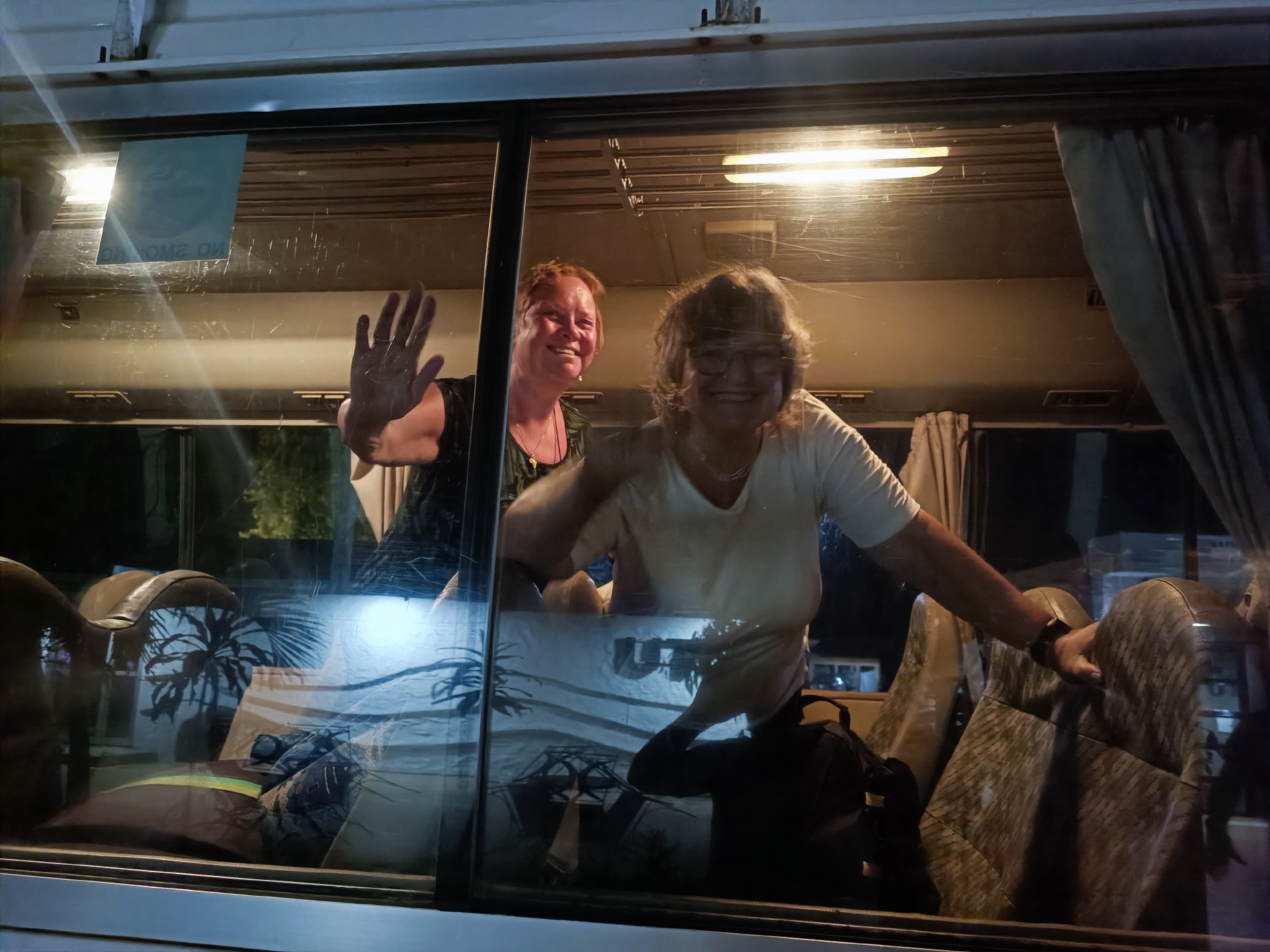 Monika und Biggi mussten heute abreisen. Um 22.30 Uhr kam der Bus, um sie zum Flughafen zu bringen.
