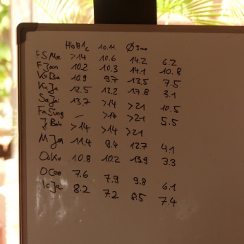 Gegen 16.30 haben wir den Workshop beendet, in der Hoffnung, dass es in den nächsten Monaten weitere Verbesserungen des HBA1c geben wird (muss).