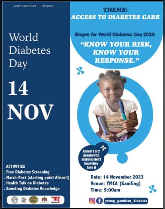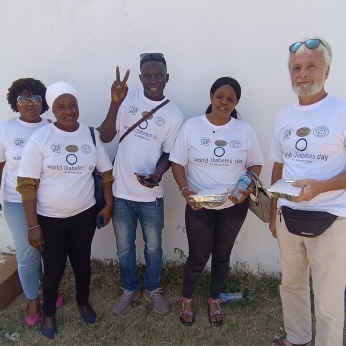 Es wurde eine tolle Veranstaltung zum Weltdiabetestag. Treffpunkt am Morgen, ab 9.30, war das Gebäude von Africell in der Kairaba Avenue. Dort haben wir uns zu dem fast schon üblichen "Umzug" – dem "March Pass" aufgestellt, sind gegen 10.30 dort losgelaufen, zum YMCA-Gebäude (ca. 2 km), dort war alles vorbereitet. Das Programm war toll, ein Gemisch aus Reden und einem von den Typ1ern aufgeführtem Sketch zum Thema Unterzuckerung. Es gab Entertainment als Zwischeneinlagen, für alle ein super aufmunterndes "Spektakel". Wir als Gruppe haben uns sehr über das abwechslungsreiche Programm gefreut, und wir glauben, dass es bei allen super aufgenommen worden ist.