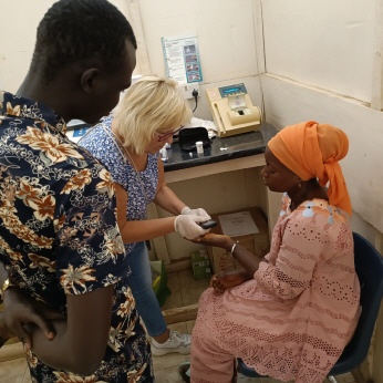 Roland hat sich heute alleine auf den Weg gemacht, zunächst nach Banjul ins Edward Francis Small Teaching Hospital. Ein Besuch bei Dr. Mariam Jaw in der Diabetesambulanz, und Peter, der dort die Blutzuckermessungen macht.