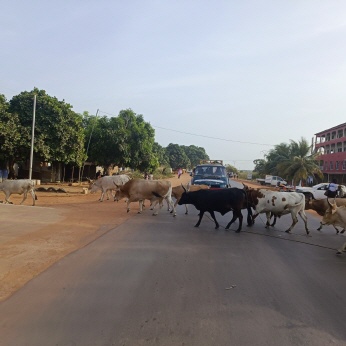 Für heute hatten wir den ersten Tag im Gudrun Medical Lab organisiert. Nach dem Frühstück sind wir über die neue vierspurige Straße nach Sinchu Alagie gefahren. Mittlerweile sind die Bauarbeiten vorne in Kotu angekommen, die nächsten Monate wird sie Richtung Banjul weiter gebaut. Die Brücke in Sinchu Alagie ist fast fertig. Da zwischendrin einige Bauabschnitte nicht fertig sind, geht es nebenan über staubige Sandpisten. In Richtung Lab war der Kreisverkehr gesperrt, so sind wir die letzten paar Meter gelaufen.