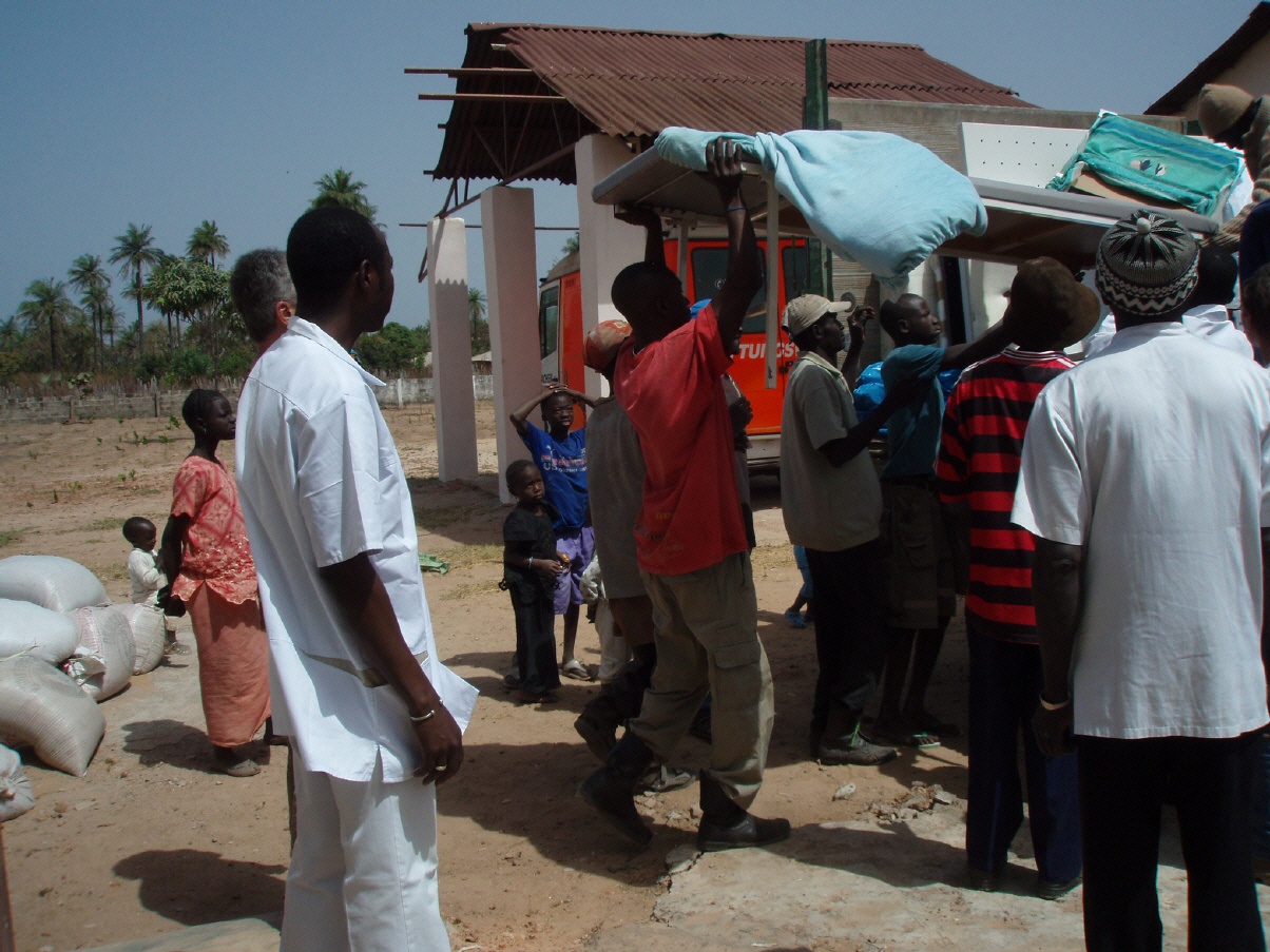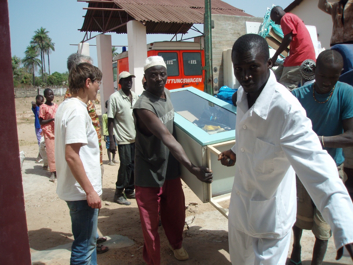 Da wir für Januar 2009 eine Hilfslieferung nach Gambia geplant hatten, war eines unserer Ziele, die Klinik mit Arztliegen, Arzneischränken, Betten und Matratzen, Schreibtischen und Regalen auszustatten. Verbandsmaterialien, diverse Medikamente (u.a. auch Metformin und Blutdruckarznei) konnten wir auf Wunsch von Dr. Yahya Bojang ebenfalls mitbringen. Auch mit einem überschaubaren Geldbetrag helfen wir jedesmal, wenn wir die Klinik aufsuchen.