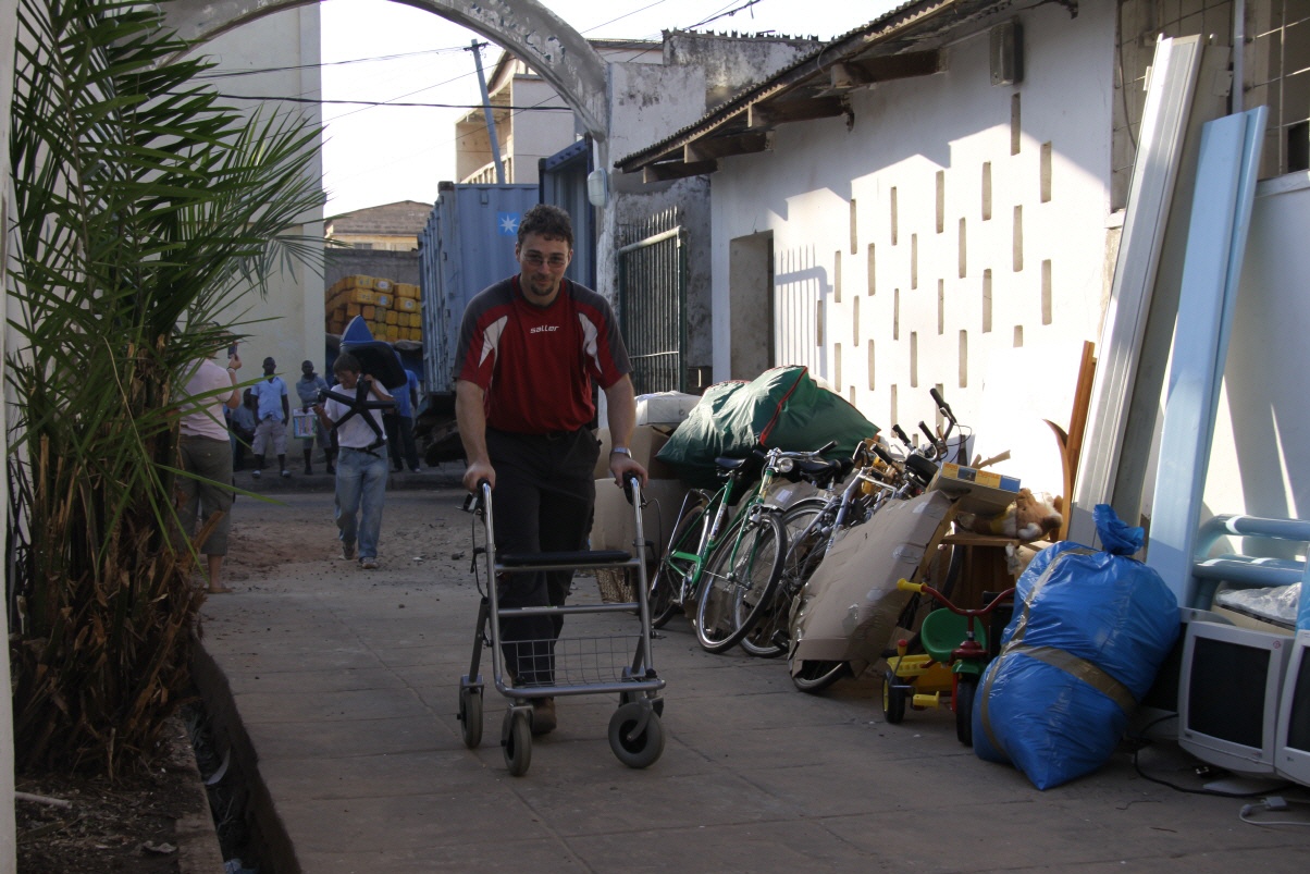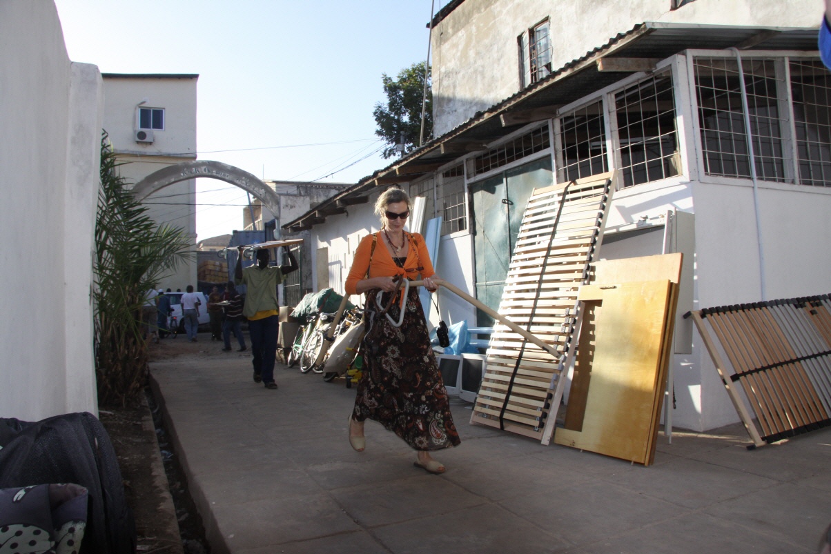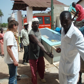 Einen Teil der Ausstattung konnten wir Dr. Gaye über unseren im Januar 2010 organisierten Container beisteuern. Klinikbetten, Pflegebetten, Pflegerollstühle, Rollatoren und etliche medizinische Geräte (EKG und Sonografie) sowie zum Beispiel Stühle für den Wartebereich und Schreibtischmöbel waren dabei und werden genutzt.