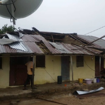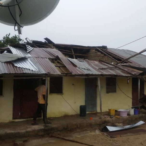 In diesem Jahr hat die Regenzeit recht früh gestartet. Musa Sanneh, er wohnt in Gunjur, hat gleich an diesem Tag (16. Juni) ein Bild geschickt. Vom Haus hat es einige Corrigates (Wellblechtafeln, mit denen sind die meisten Häuser gedeckt) bei einem Gewittersturm abgerissen.