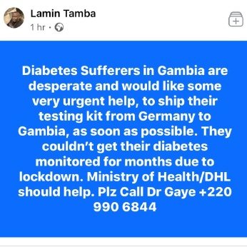 Und wir arbeiten mit Roche zusammen, und hoffen, dass die am 18. März geplante Lieferung der Teststreifen bald stattfindet. Wir bekommen seit Mitte April immer wieder eine Nachricht einer/eines Betroffenen, dass sie nicht mehr messen können. Das ist bitter, weil es eh schon schwierig ist, die Typ1er von Blutzuckermessungen zu überzeugen. Das Gudrun Medical Laboratory von Eliman Jobe kann noch etwas aushelfen, aber seine Vorräte neigen sich dem Ende zu.