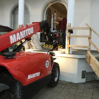 Die zugehörigen Geräte wurden extra verpackt und stehen nun an einem geschützten Ort. Das Grundgerät steht im Lager in Stetten, wird noch in eine Folie eingewickelt und wartet auf den Transport im Februar 2021.