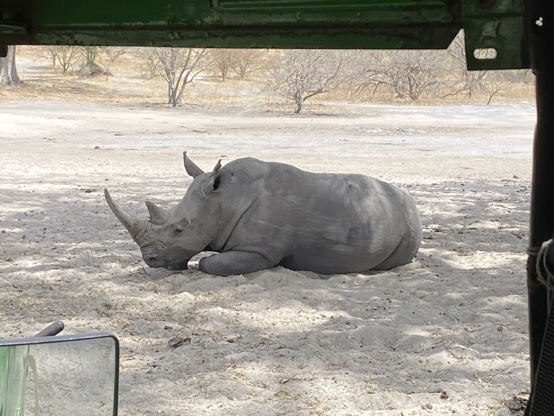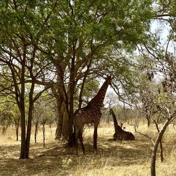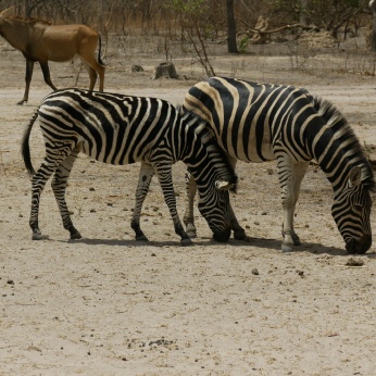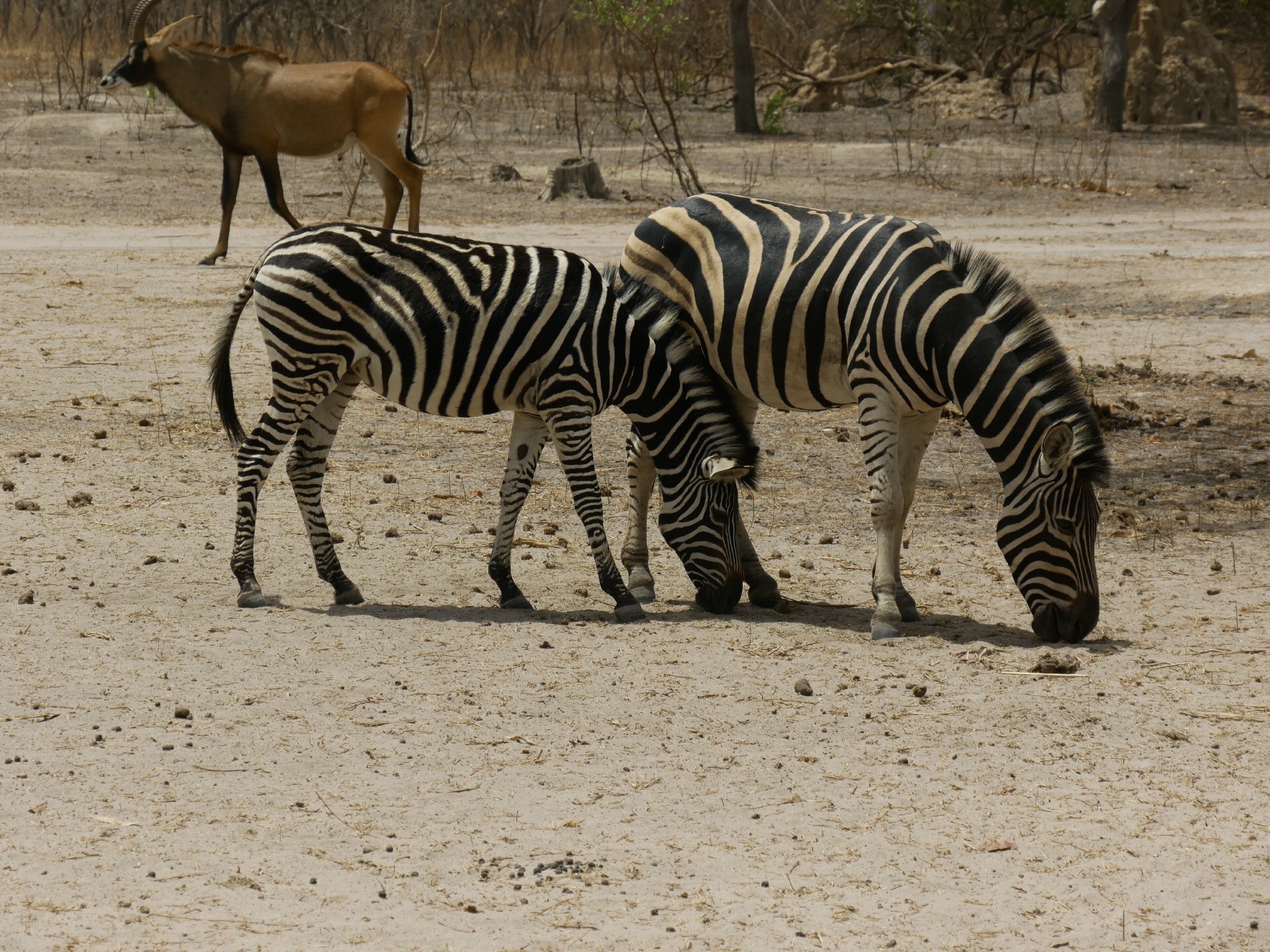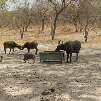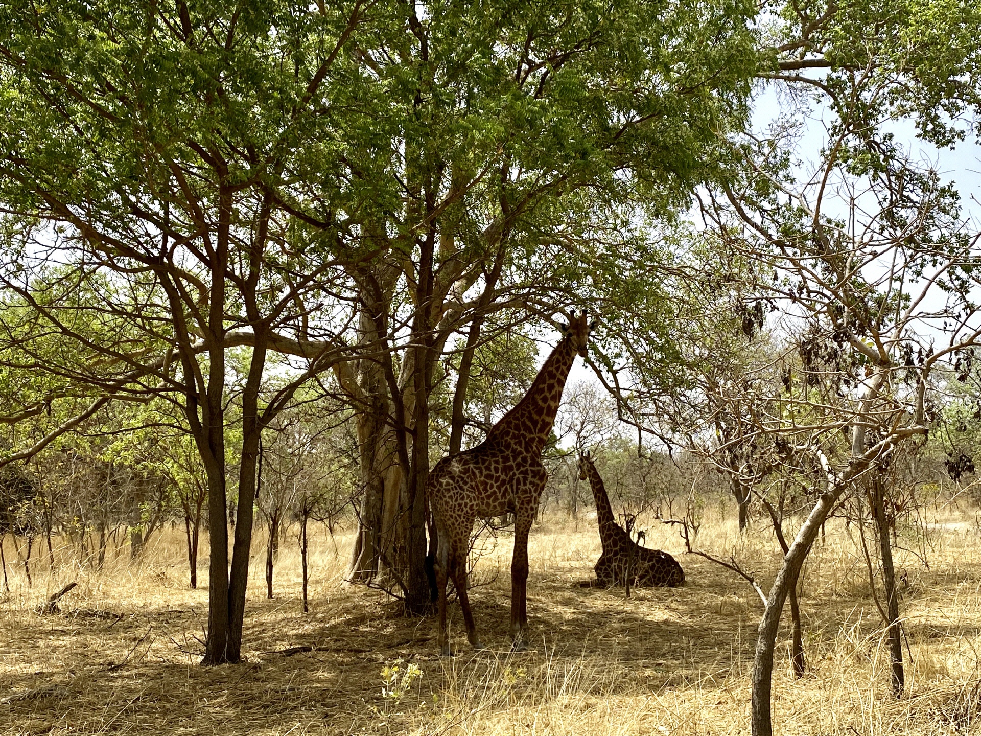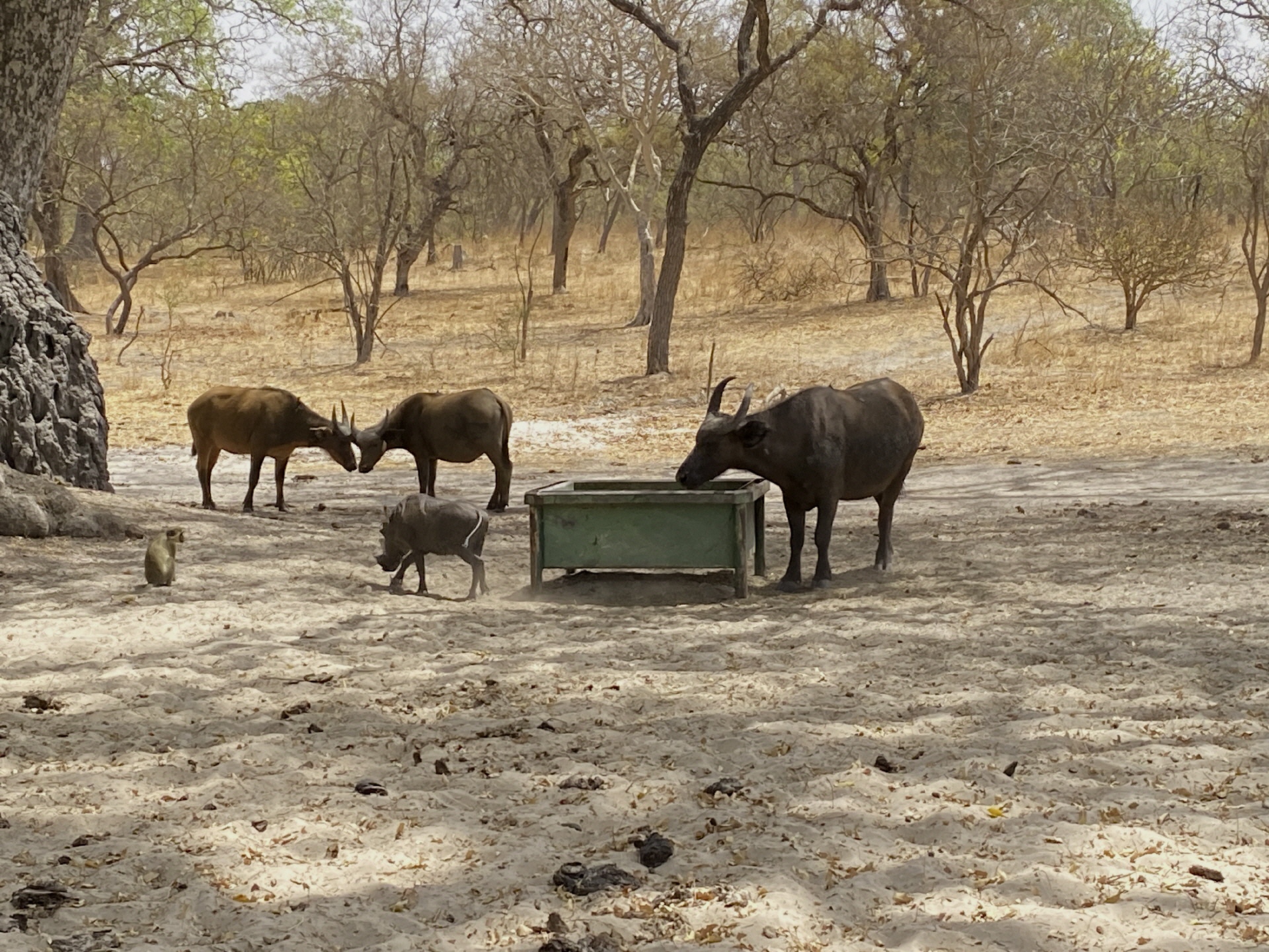 Von der Grenze sind es nur 12km bis zum Fathala-Nationalpark, einem Areal mit 2000 Hektar. Mit einem Landrover fuhren wir zu ein paar Stationen, und wir konnten Antilopen, Büffel, Zebras, Affen, ein Nashorn und ein paar Wildschweine beobachten. Weiter hinten im Park konnten wir noch 3 Giraffen sehen.