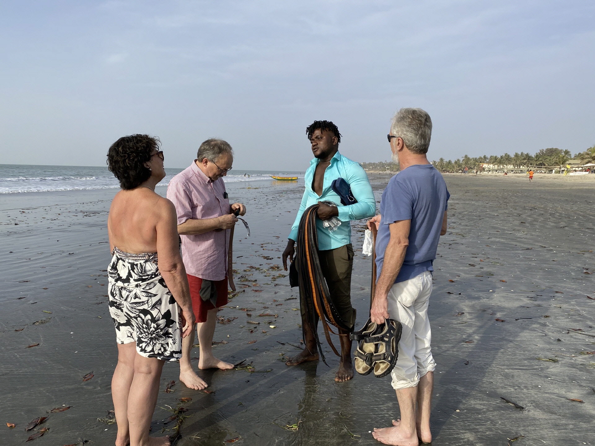 Zurück im Hotel, sind Conny, Christian und Gudrun zum Strand. Am Nachmittag kam Mr. Elliott, unser "Finanzminister". Wir haben unseren Finanzausgleich erledigt, das heißt, unser Verein hat ihm all die Auslagen an unsere Diabetiker seit November erstattet. Sheriff Sanyang (Typ1) kam später, er lernt Elektriker. Weil er Talent hat, konnte er ab Januar als einer (mit vier weiteren Personen) von insgesamt 75 Schüler in den Level 2 aufsteigen und dort weitermachen.