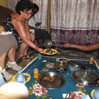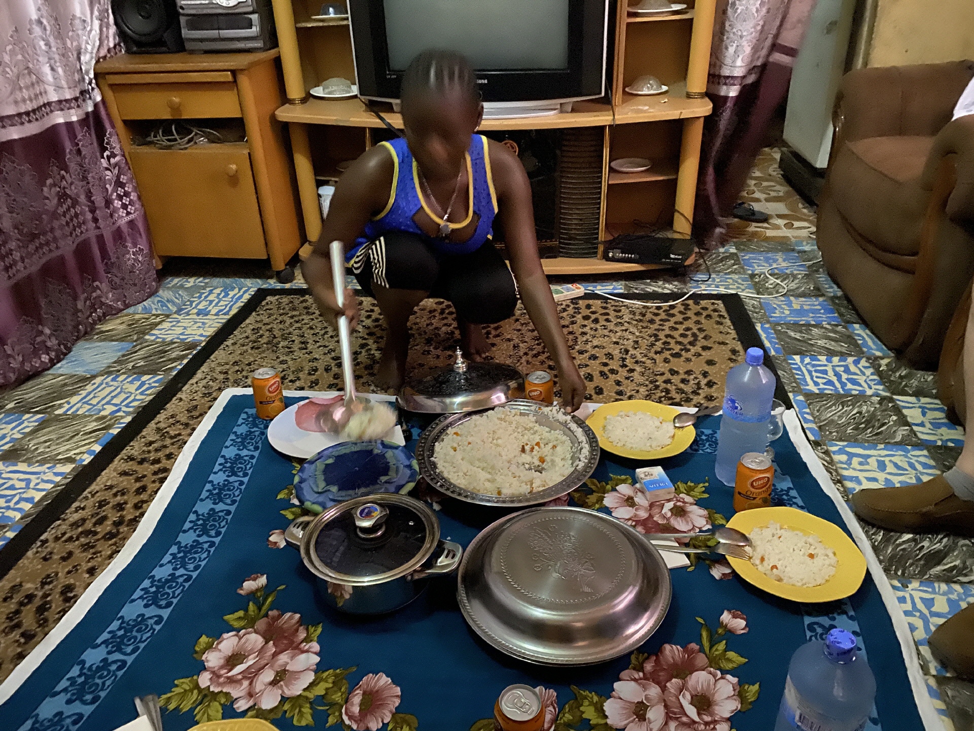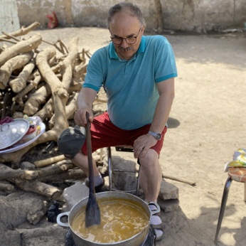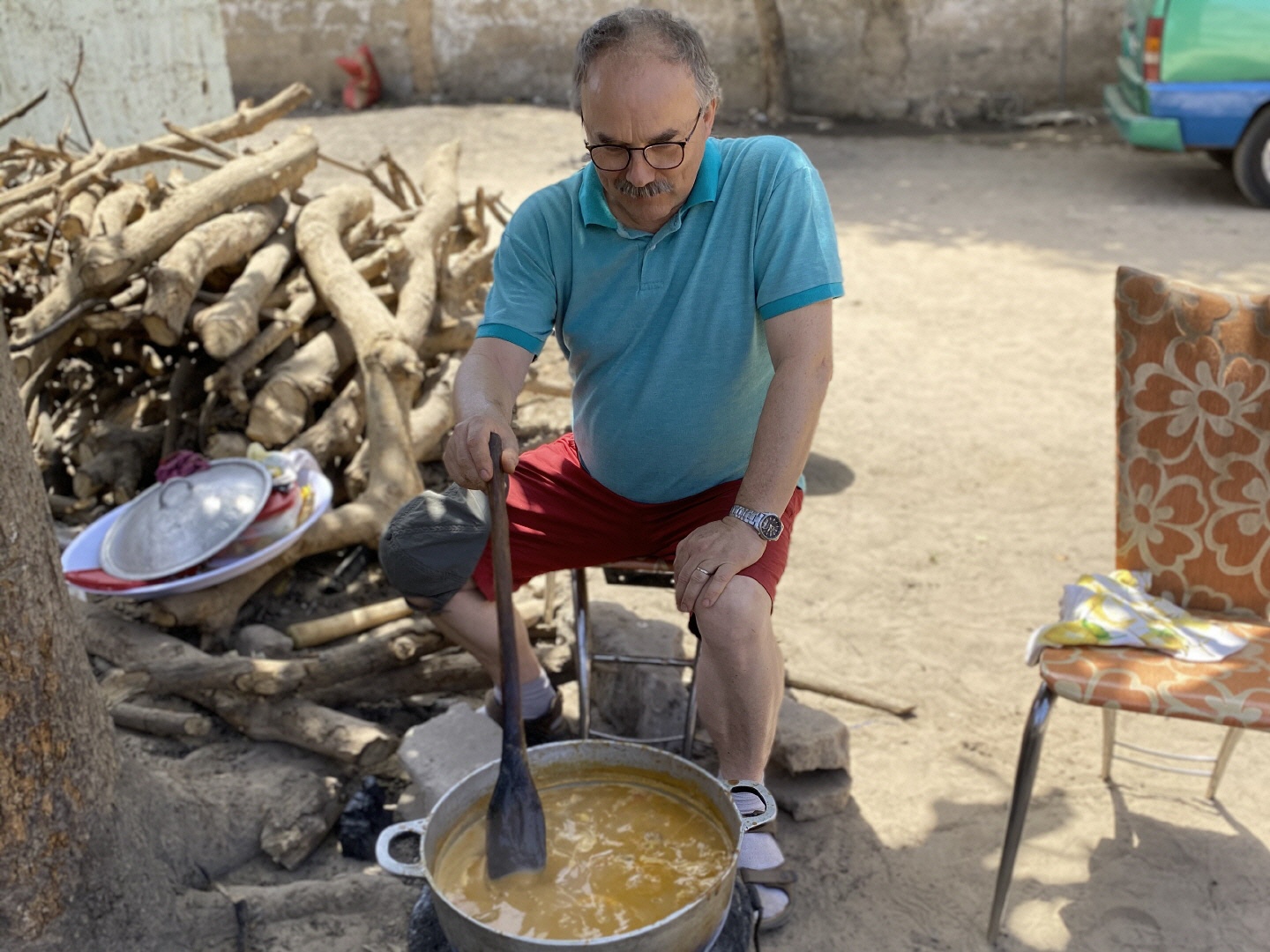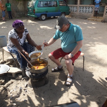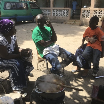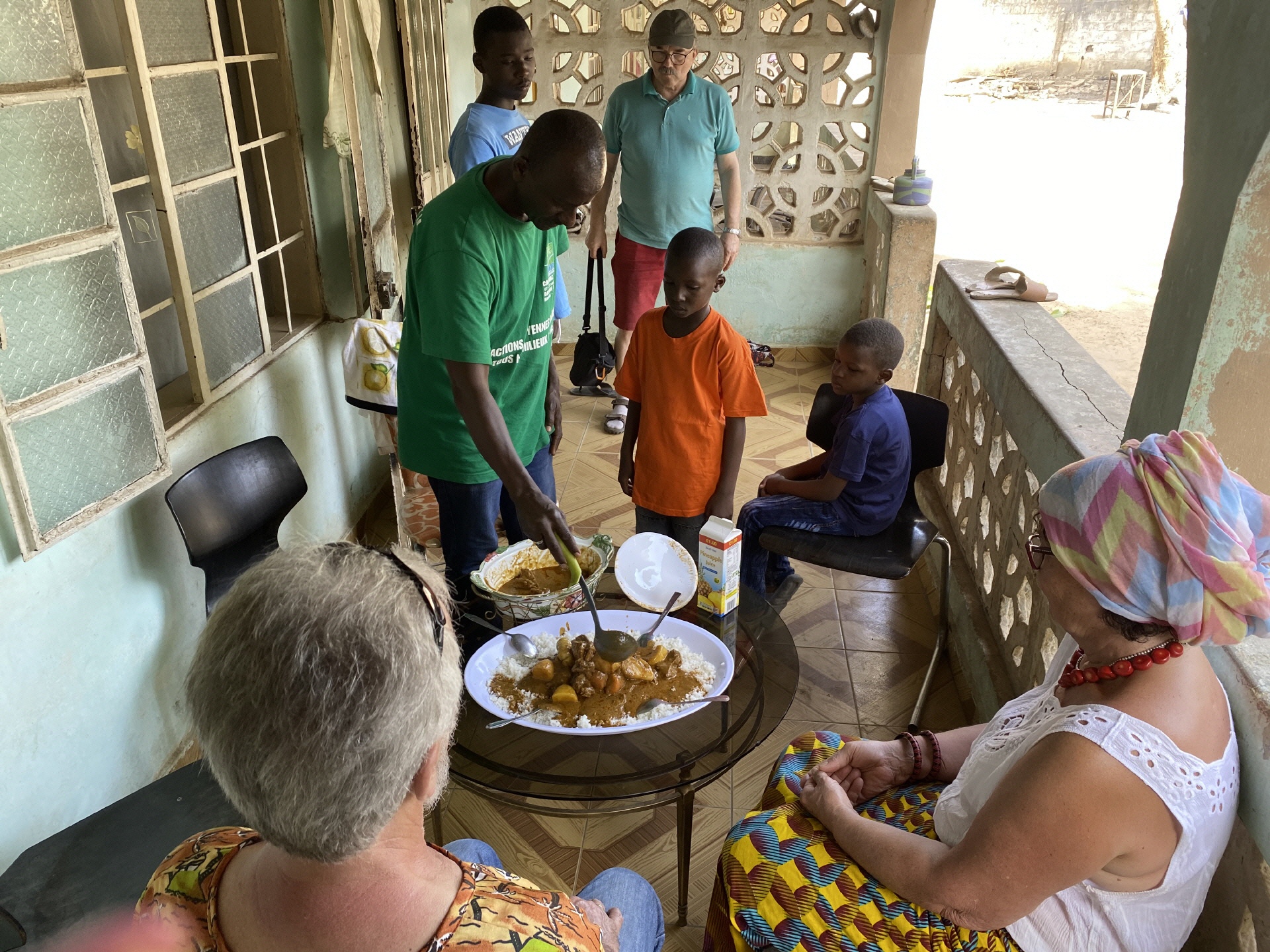 Christian und Conny sind heute am Morgen in die Familie von Abou, unserem Taxifahrer. Er ist ja auch einer "unserer" Patienten. Christian wollte dabei sein, wie ein Lunch vorbereitet wird. Von Anfang an. Einkaufen auf dem Markt, bis hin zum fertigen Essen, das dauert von 9 Uhr bis 15 Uhr....