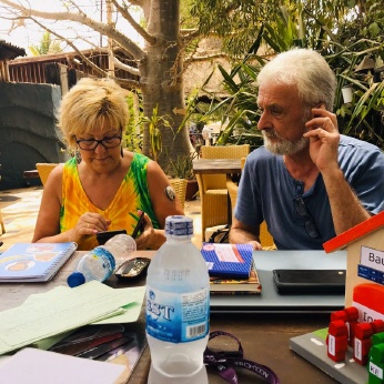 Gudrun und Roland sind am Nachmittag dazugekommen. Teststreifen, Insulin und Metformin für Abou im Gepäck. Und ja, Abou hat zwei Frauen!