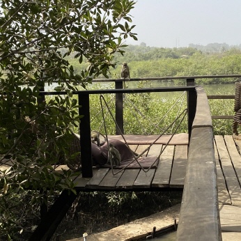 Am Abend haben Gudrun und Roland Lydia und Bernhard Kolonko getroffen, die auf einer Rundreise Senegal-Gambia waren. Sie müssen abbrechen und fliegen noch in der Nacht nach Deutschland zurück.