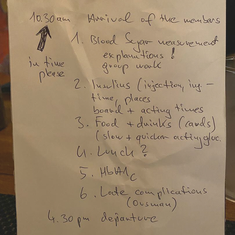 Gegen 16.30 haben wir den Workshop beendet, in der Hoffnung, dass es in den nächsten Monaten weitere Verbesserungen des HBA1c geben wird (muss).