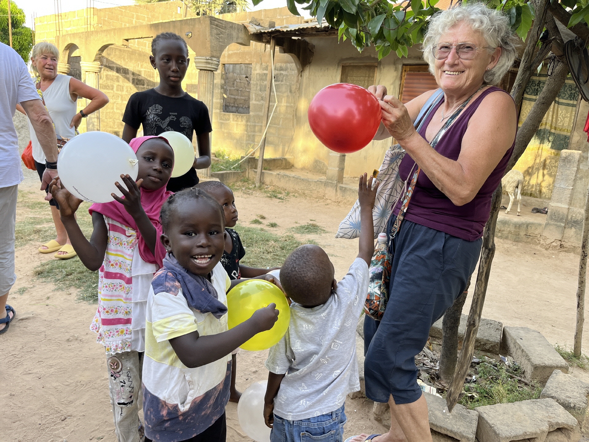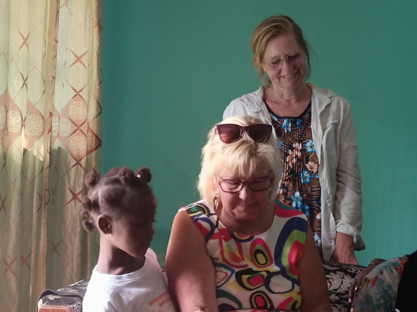 Alle haben gut geschlafen! Am Nachmittag hat uns Abou abgeholt. Wir sind zu unserer Kleinsten mit Diabetes Typ1, Mariama Ndow. Sie hat wiederum einen Sensor (Libre 2 - Gewebezuckermessung) gesetzt bekommen, die wir in Deutschland eingesammelt hatten, von Personen, die sie nicht mehr benötigen. Mariama ist nicht mehr so schüchtern, und über die Geschenke ihrer Patin Christa war sie überglücklich, samt ihrer Schwestern.