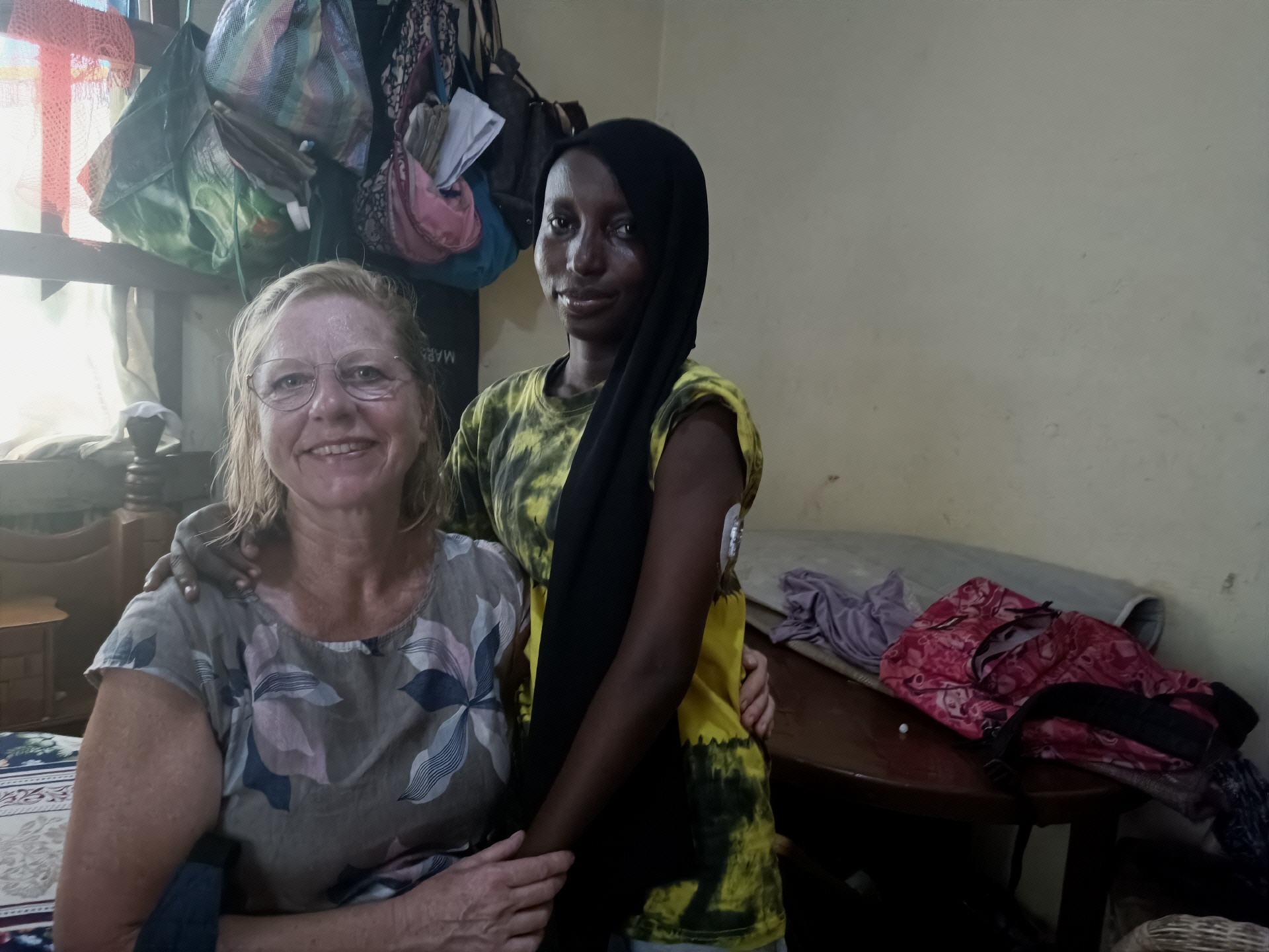 In Banjul haben wir Amie Jobe besucht. Sie ist die Tochter von Ngoneh, die wir bei unserem ersten Besuch in Gambia im Februar 2003 kennengelernt hatten. Amie hat 2009 Typ1-Diabetes bekommen. Familienbesuche dort, Teilnahmen an allen Workshops, Kommunikation über WhatsApp, nichts hatte geholfen, um gute Blutzuckerwerte zu haben. Nach nun 14 Jahren ununterbrochenen schlechter HbA1c-Werte musste ihr der rechte Fuß oberhalb des Kniegelenks amputiert werden, und das in einem Alter von 24 Jahren!! Sie lebt nun zusammen in der Familie ihrer Schwester Ndey Fatou.