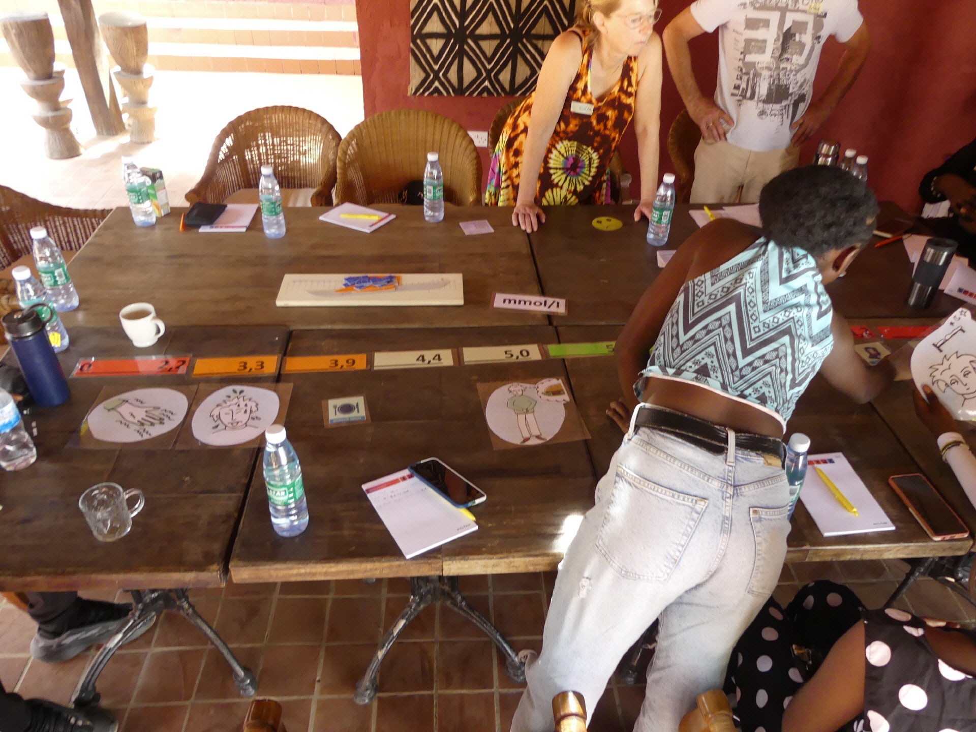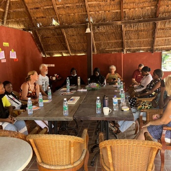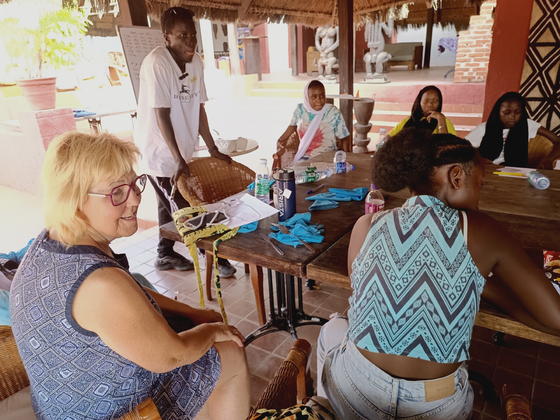 Diesen Samstag hatten wir den Workshop hier im Bakotu-Hotel geplant. Starten wollten wir um 10.30h, wir haben gewartet, bis alle hier waren. Um 11.30h konnten wir beginnen. Es waren, bis auf Ousman Ceesay, alles Damen, im Alter von 12 bis 24, insgesamt 8. Zwei Teilnehmerinnen kamen dann um 13.30h…