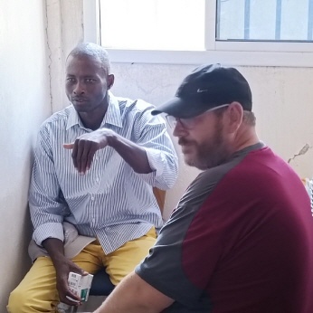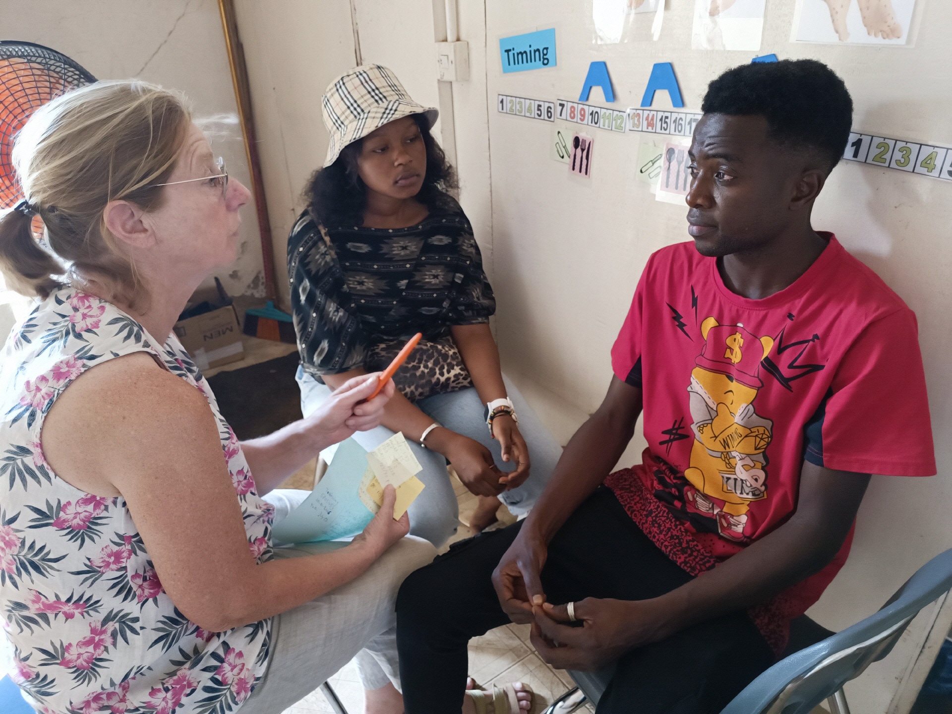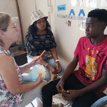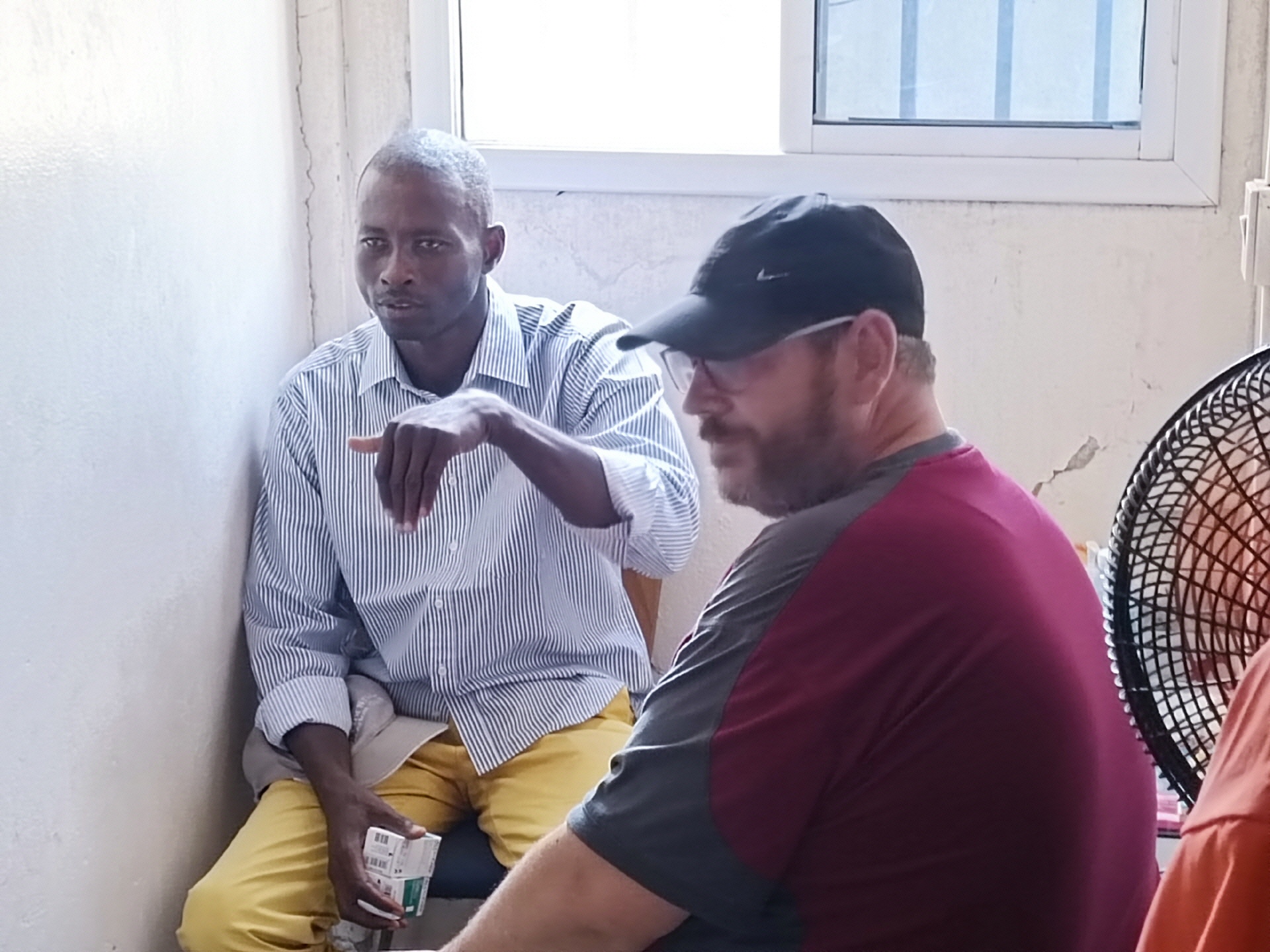 Anschließend ging es weiter zu Rilwan Lowe, er wurde nun auf die ICT (Basal- und Mahlzeiteninsulin) eingestellt. Bisher hatte er das Mischinsulin 30/70 gespritzt, und Actrapid. Wir hoffen, dass er mit unserer Schulung zurechtkommt und alles verstanden hat. Es sind halt schon viele neue Informationen für ihn. Er hat schon seit langer Zeit einen Job, er arbeitet als Tankwart.