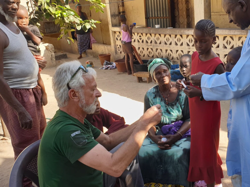 Ein Zwischenhalt in Batabut, dort hat uns Ebou, der Leiter der kleinen Klinik dort, erwartet. Wir versorgen die Einrichtung mit medizinischem Material.