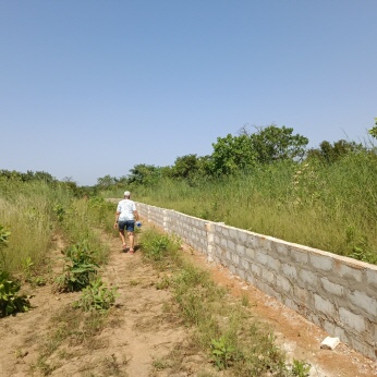 Auf der Farm wachsen die Cashewbäume, ca. 800 Stück sind es mittlerweile , Orangenbäume, Zitronen- und Limettenbäume. Das Areal wurde noch etwas erweitert, und dort waren Ousman, Omar und einige Helfer beschäftigt, im hinteren Teil des riesigen Grundstücks die Mauer aufzubauen. Der Preis für die Cashews ist grad sehr niedrig, und fast nicht kostendeckend.