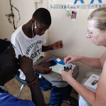 Mit einem Besuch bei Mariama Badjie am Vormittag sind wir gestartet. Sie ist nun schon 17 Jahre alt. Ihre Mutter ist sehr besorgt und kümmert sich ständig darum, dass sie misst, und die richtige Menge an Insulin spritzt. Mal sehen, wie sich ihr HbA1c-Wert entwickelt hat: im April 9,7%, jetzt 9,3% - noch nicht optimal. Sie wurde mit einem Dexcom 7 versorgt. Wir hoffen, dass er hilft, bessere Blutzuckerwerte Werte zu haben.
