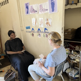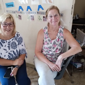 Katja hat sich alle Füße angeschaut, Steffen hat einen Augencheck gemacht, Gudrun und Mariama (aus dem Labor) haben den Langzeitzucker und Blutzucker gemessen, Roland hat sich die Blutzuckerwerte aus den Messgeräten angeschaut in der SmartPixSoftware.