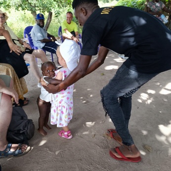 Unsere Gruppe hat Zuwachs bekommen: Armin, Elvira und Mariella (3 Jahre alt) sind heute am Morgen im Bakotu angekommen. Armin hatte vor einigen Jahren die Patenschaft für Musa Sanneh (Gunjur) übernommen, und wollte seinen Schützling persönlich kennenlernen.
