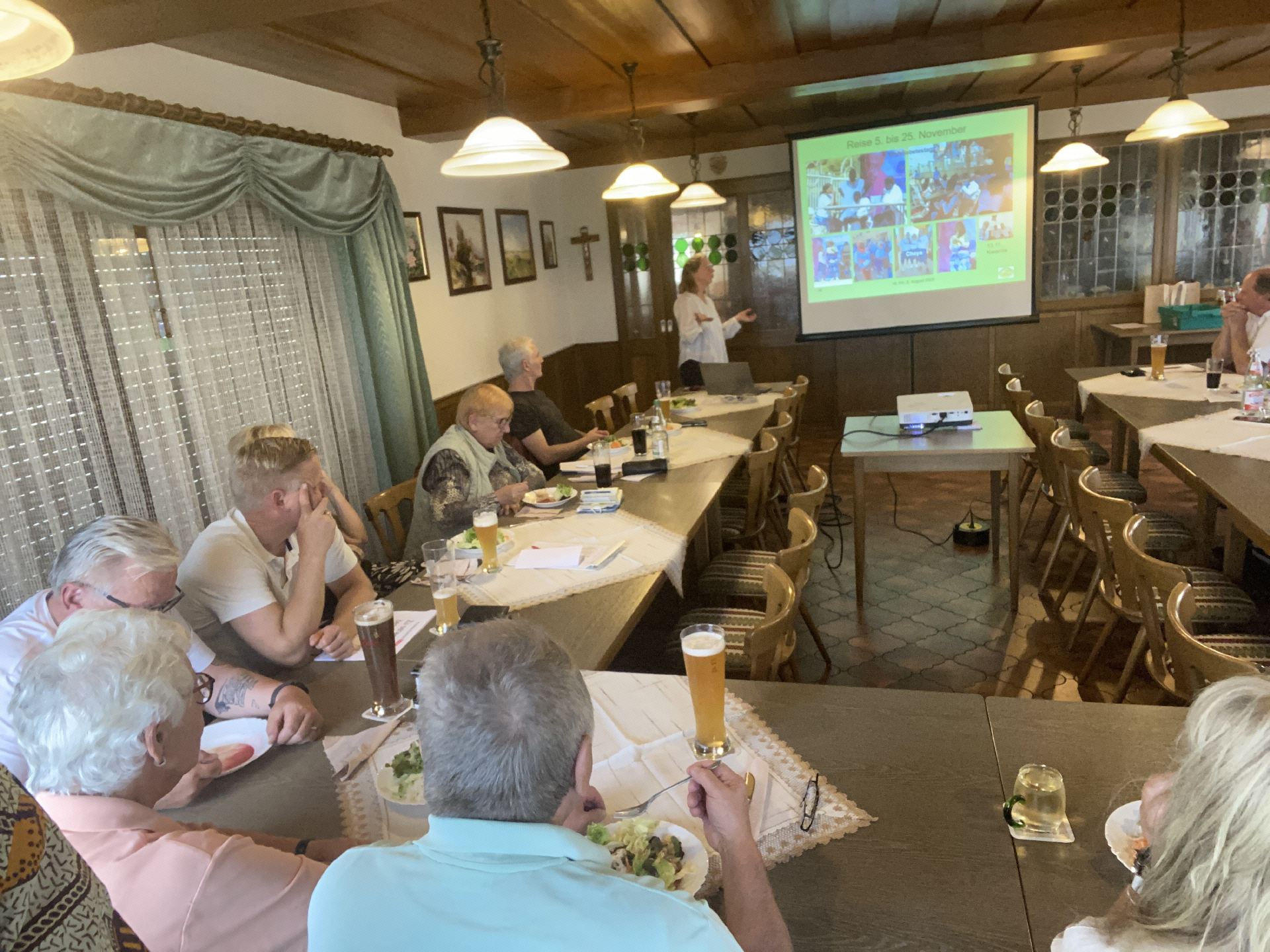 Mit dem Motto: "Erfahrung lässt sich nicht an einem einzigen Ort sammeln" begann Roland, und berichtete zunächst über die Gambiareise 2024, die Katja Waezsada, Gudrun und er selbst angetreten hatten. Der Flug mit SN Brussels war pünktllich, nach der Ankunft in Gambia hatte Abou, unser bewährter Taxifahrer, uns am Flughafen abgeholt und die Drei ins Bungalow Beach Hotel (Kotu) gebracht. Am Ankunftstatg wurde alles ausgepackt, sortiert und vorbereitet.